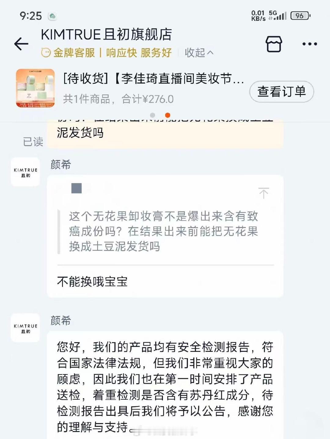 【且初回应被曝含苏丹红】且初已送检含苏丹红产品10月21日,护肤品 苏丹红登上热搜引发热议。对此,且初客服回应称:“我们的产品均有安全检测报告,符合国家法律法规,但我们非常重视大家的顾虑,因此我们也在第一时间安排了产品送检,着重检测是否含有苏丹红成分,待检测报告出具后我们将予以公告,感谢您的理解与支持。”