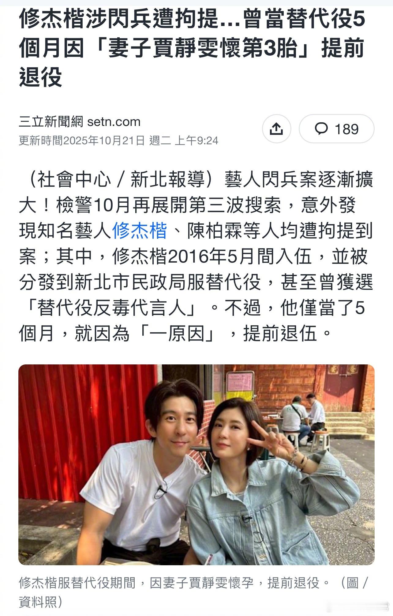 修杰楷因贾静雯怀孕提前退役修杰楷承认逃兵役