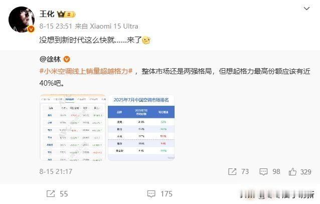 格力叫板小米空调,价格战背后是制造哲学大不同,谁在骗消费者? 10月19日晚上九点多,格力市场总监朱磊连着发了两条微博,没提小米的名字,但视频里放了一张图,1.5匹空调,小米卖一千六百八,格力卖三千多,他问,台词一样,剧本一样,为啥大家都这么演,最后说,做产品得踏实,别光靠嘴上说得好听,大家一看就明白,这是冲着小米去的。 这事儿不是吵个架就能说清的,格力自己做压缩机,用的都是真铜管,承诺十年保修,成本压不下去,小米呢,找代工厂干活,靠手机电视带人气,身子轻,走得快,一个盯技术,一个赶节奏,谁对谁错说不上,不过是想的不一样罢了。 格力总说自己像茅台、华为,贵有贵的道理,品牌就该值这个价,小米粉丝不买账,觉得国产货就该便宜点,凭什么让老牌子躺着收钱,消费者心里也犯嘀咕,到底该信贵就是好,还是便宜才是聪明,这已经不是买不买的问题,而是心里头两种想法在打架。 这事早就有旧账,2013年董明珠跟雷军打赌,说五年内格力能赢小米,到现在也没个定论,今年七月小米空调线上销量第一次超过格力,数据一出来,朱磊马上说这数字不对,现在小米又要推新款中央空调,时间掐得这么巧,明显是格力先动手,想压住小米的势头。 老百姓也不傻,格力嘴上说自主研发,背地里也开直播带货,老板还上综艺,小米喊性价比,高端空调卖到两千五,快跟格力最便宜的款一样贵了,两边都在悄悄改,谁也不是纯好人,谁也不是纯坏人,大家看热闹,心里明白,这不是谁压谁,是老厂怕新玩法吃掉自己,新玩家想撕开技术的神话。 华为和苹果打架,靠的是芯片和系统,实打实的本事,格力和小米较劲,一个是真金白银砸出东西,一个是用脑子把东西卖出去,一个慢慢磨,一个赶紧赚,老百姓在中间,挑哪个都难。 小米到现在也没个说法,市场里的人说,家电早就不靠谁便宜争高低了,接下来三年看的是谁家修得快,谁家能跟手机连上,谁家真能帮你省电省钱,微博上吵成一团,不过是这场大变前的小动静,真正的好戏,还在后头。