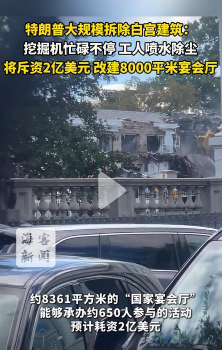 奇了个怪,特朗普竟然下令大规模拆除白宫建筑。搞维修吗?还是危房改造?都不是,是要修建吃饭的地方,宴会厅。 花2以美元,建8000平米宴会厅。谁要吃席子了吗? 8000平米,长宽各有90米左右。