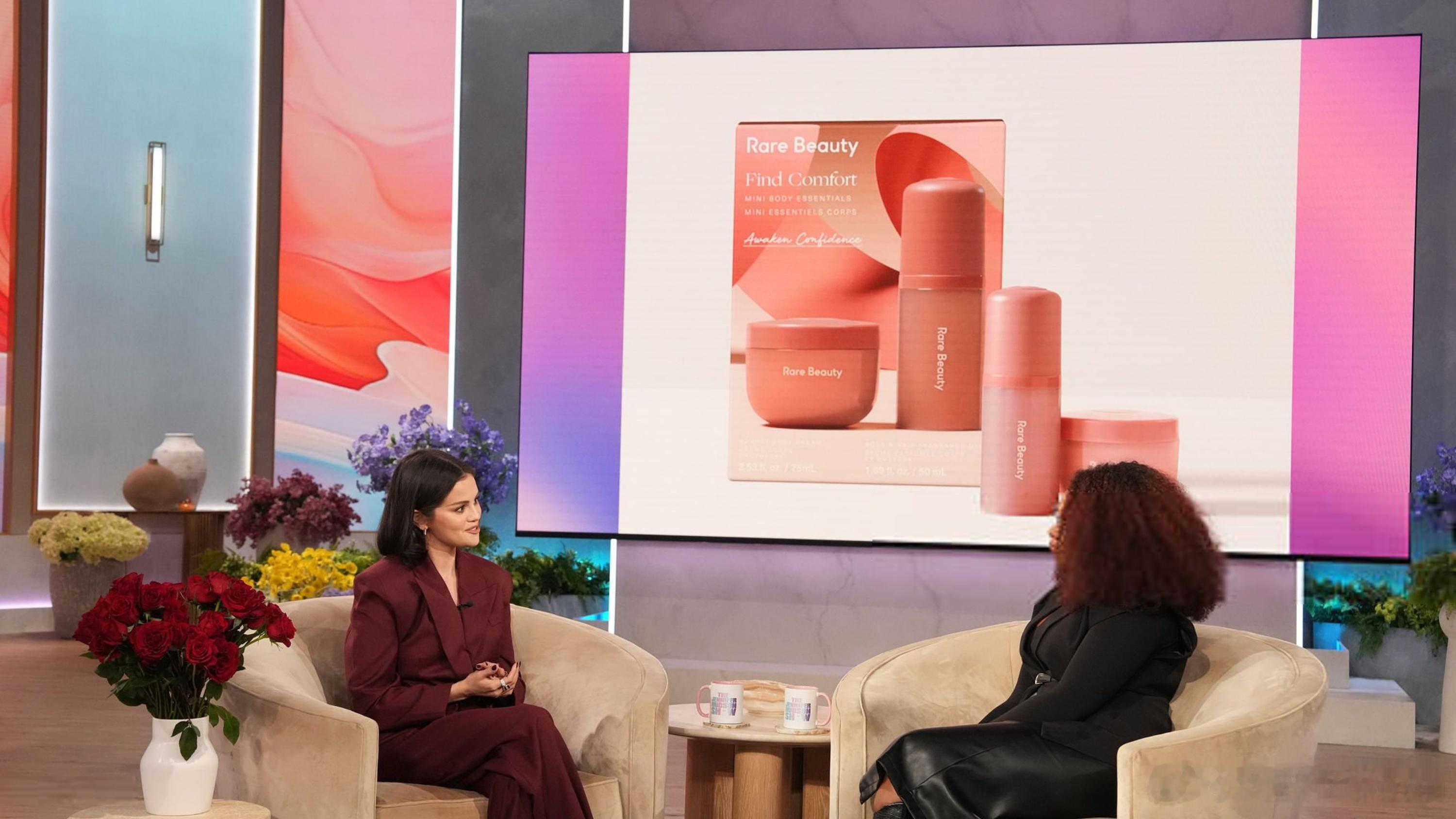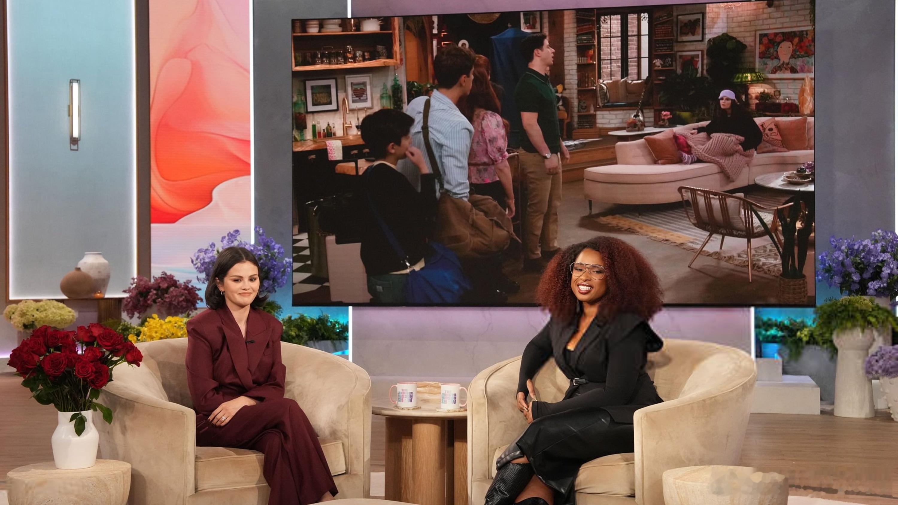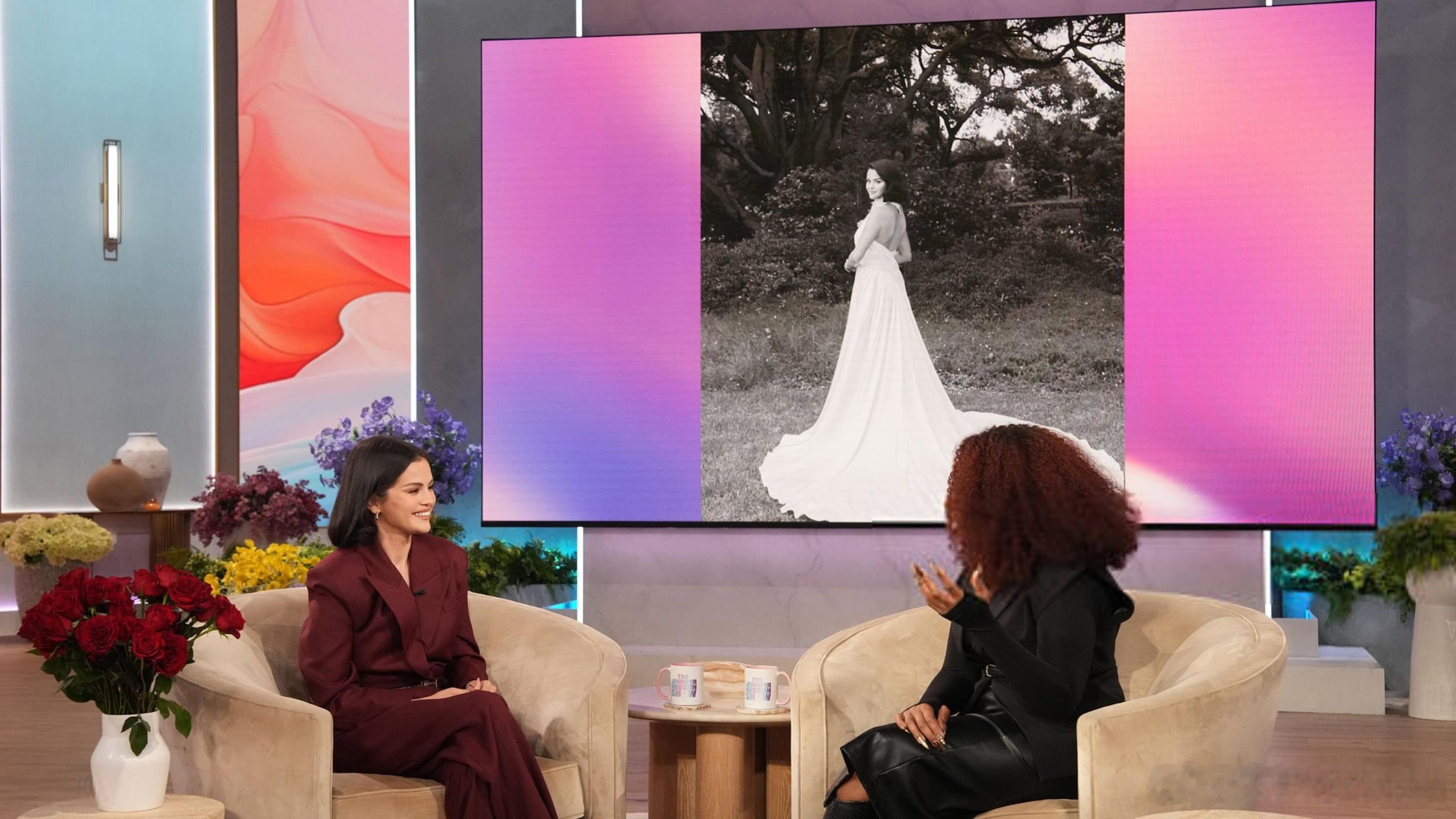 selena gomez赛琳娜戈麦斯做客《The Jennifer Hudson Show》节目宣传《少年魔法师:后继者》,顺便把婚礼和自家rare beauty聊个遍