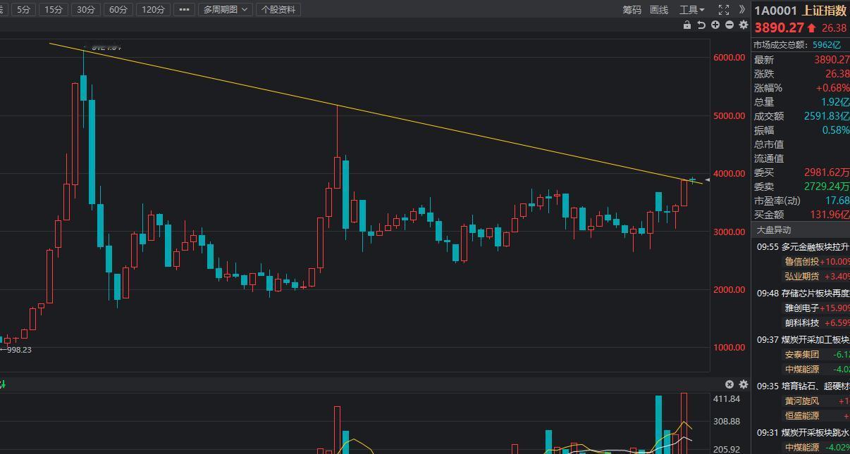 十月份的月线,我依旧认为会收阳线,这是极大概率事件,收阴线的概率很小很小,几乎可以约等于0。月初是这样认为,现在依旧是这样认为。从四季度的季线去看,收阳线在我看来是没有悬念的,只是阳线大小的问题。 在年初的时候我认为四季度能看到阔别十年的4500,现在我也依旧这么看,剩下两个多月里,市场会有一波2025年的主升浪,目标直指4500点。 十月4000点突围倒计时:还剩9个交易日内。