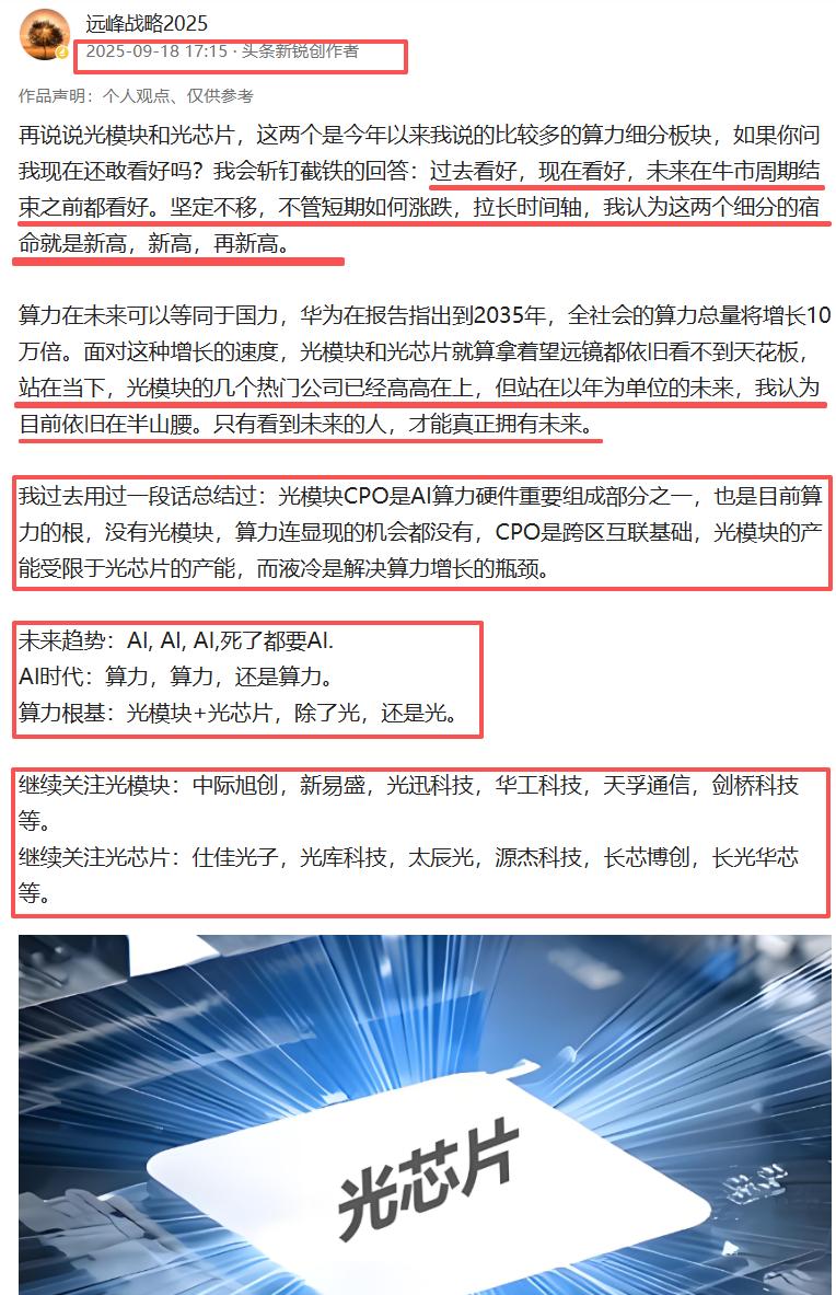 当光模块的增量行情确立后,光芯片,PCB,液冷的行情也会紧随其后,这几个其实一条绳上蚂蚱。 着重说说液冷,其实液冷是算力的瓶颈,OCP社区正大力推动浸没式冷却在机架、油箱、歧管、连接器等方面的标准化工作,目标是实现不同厂商设备间的即插即用。从整个产业链看,液冷是解决CPO极高局部热密度的唯一可行方案。 换句话说,液冷不再是独立的子系统,而是与算力、网络、供电进行协同设计的核心要素,其战略地位空前提升。 自七月中旬看好液冷方向以来,至今我依旧看好,这是算力爆发式增长的瓶颈,不得不重视。 继续关注:英维克,申菱环境,高澜股份,同飞股份,工业富联,浪潮信息,曙光数创。