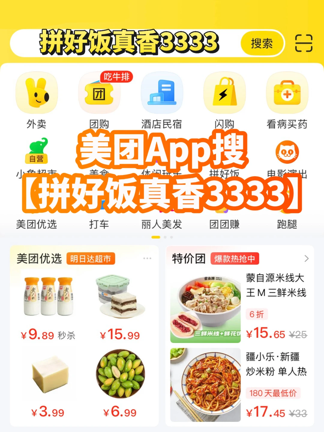 不用凑单,打开美团App搜【拼好饭真香3333】