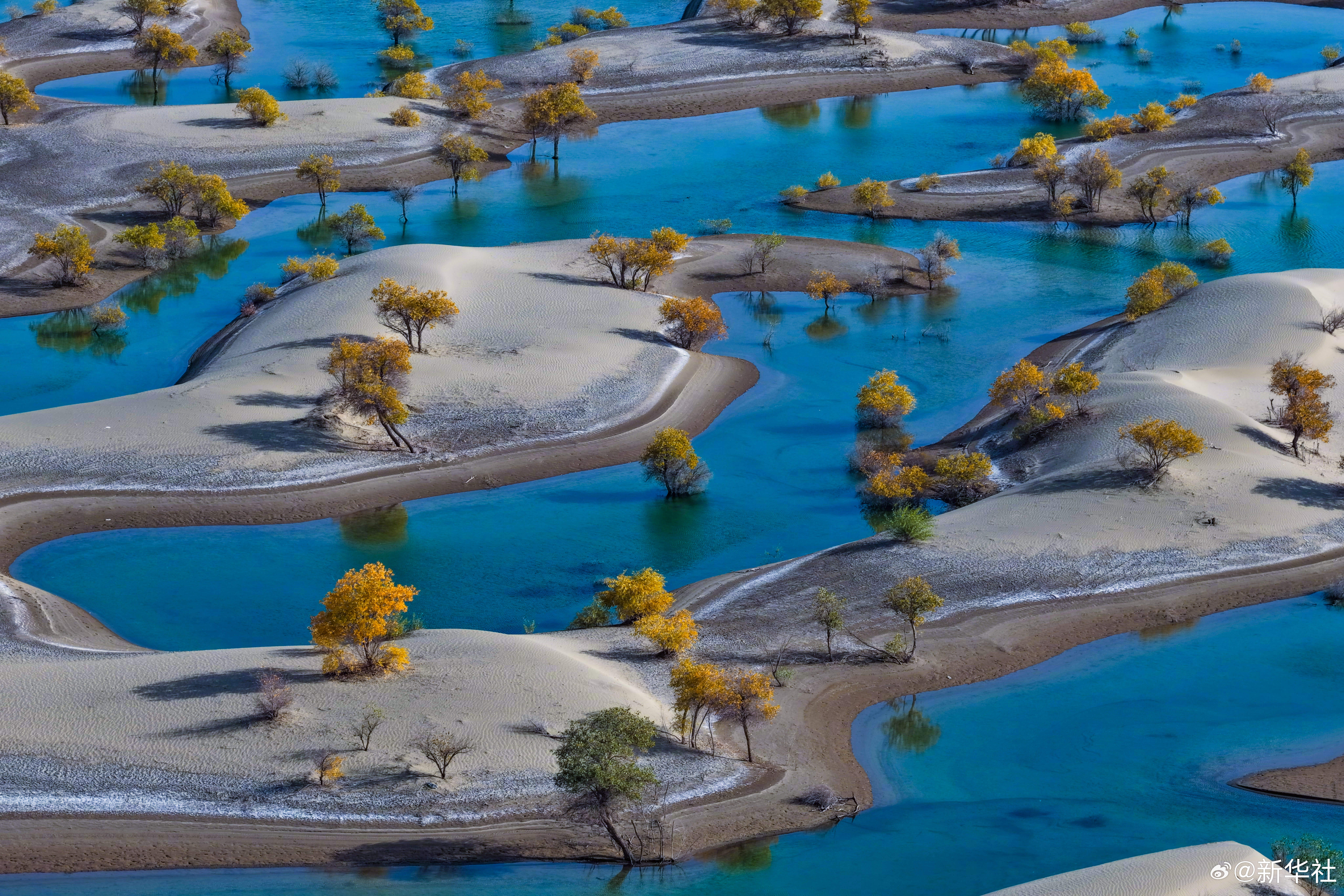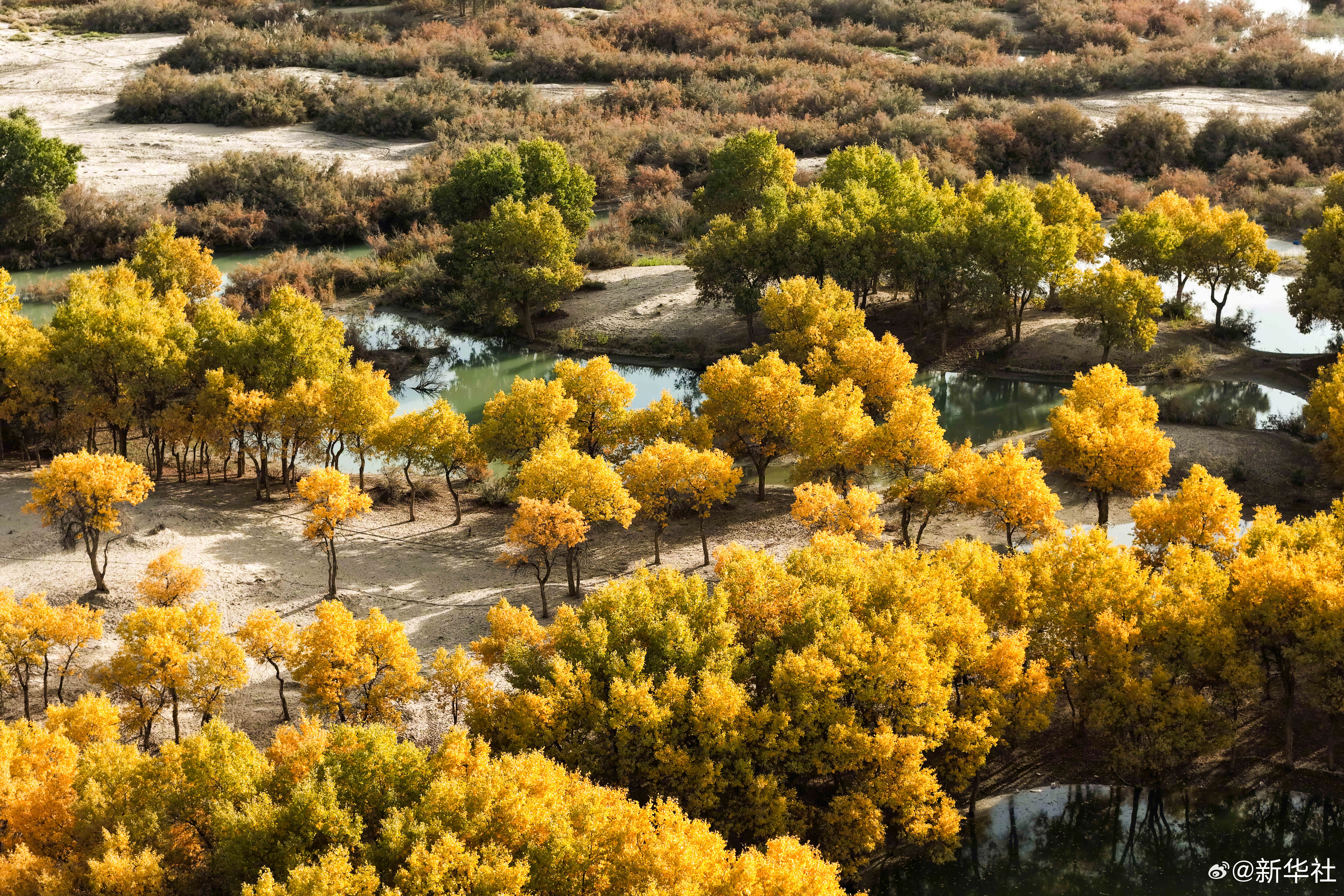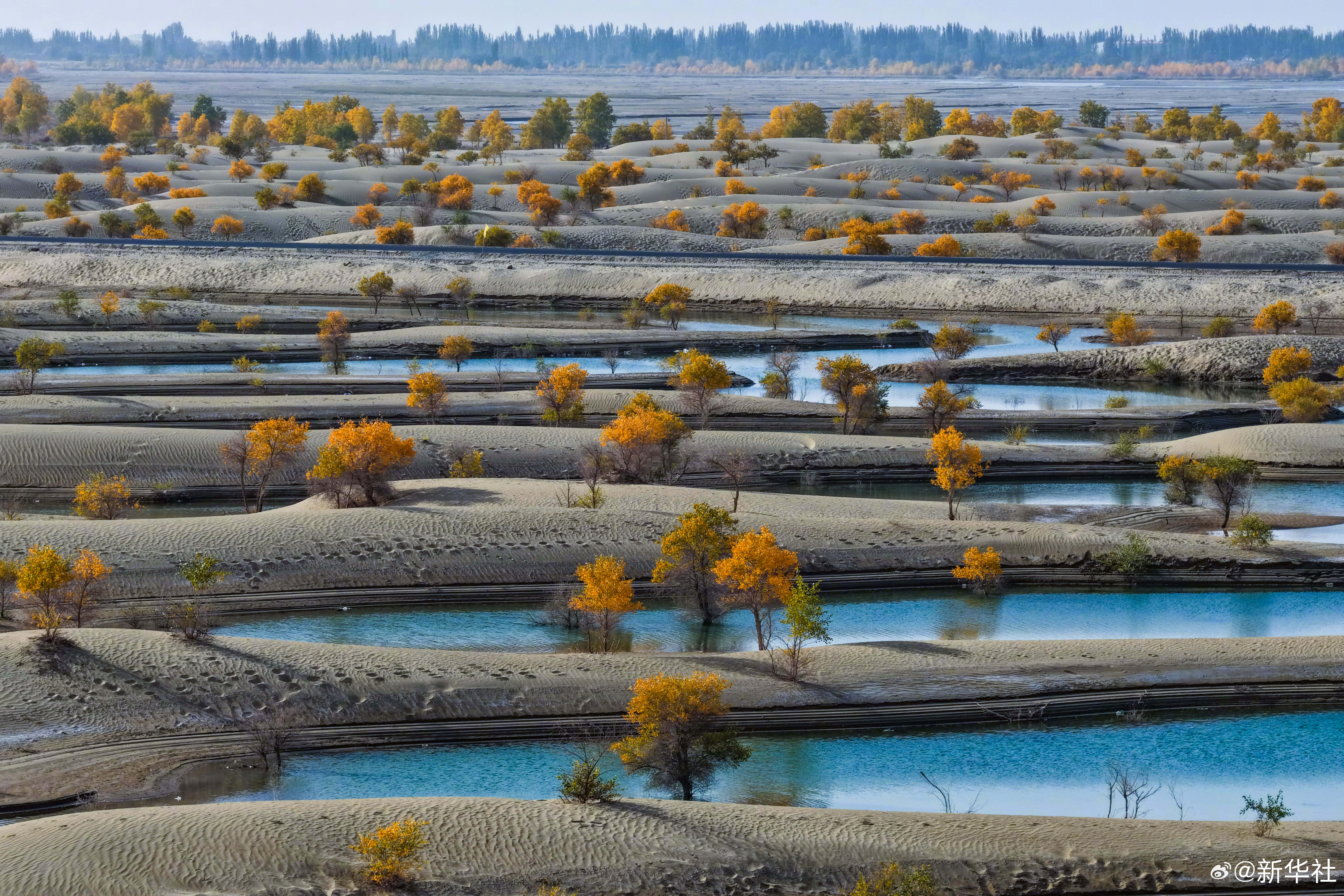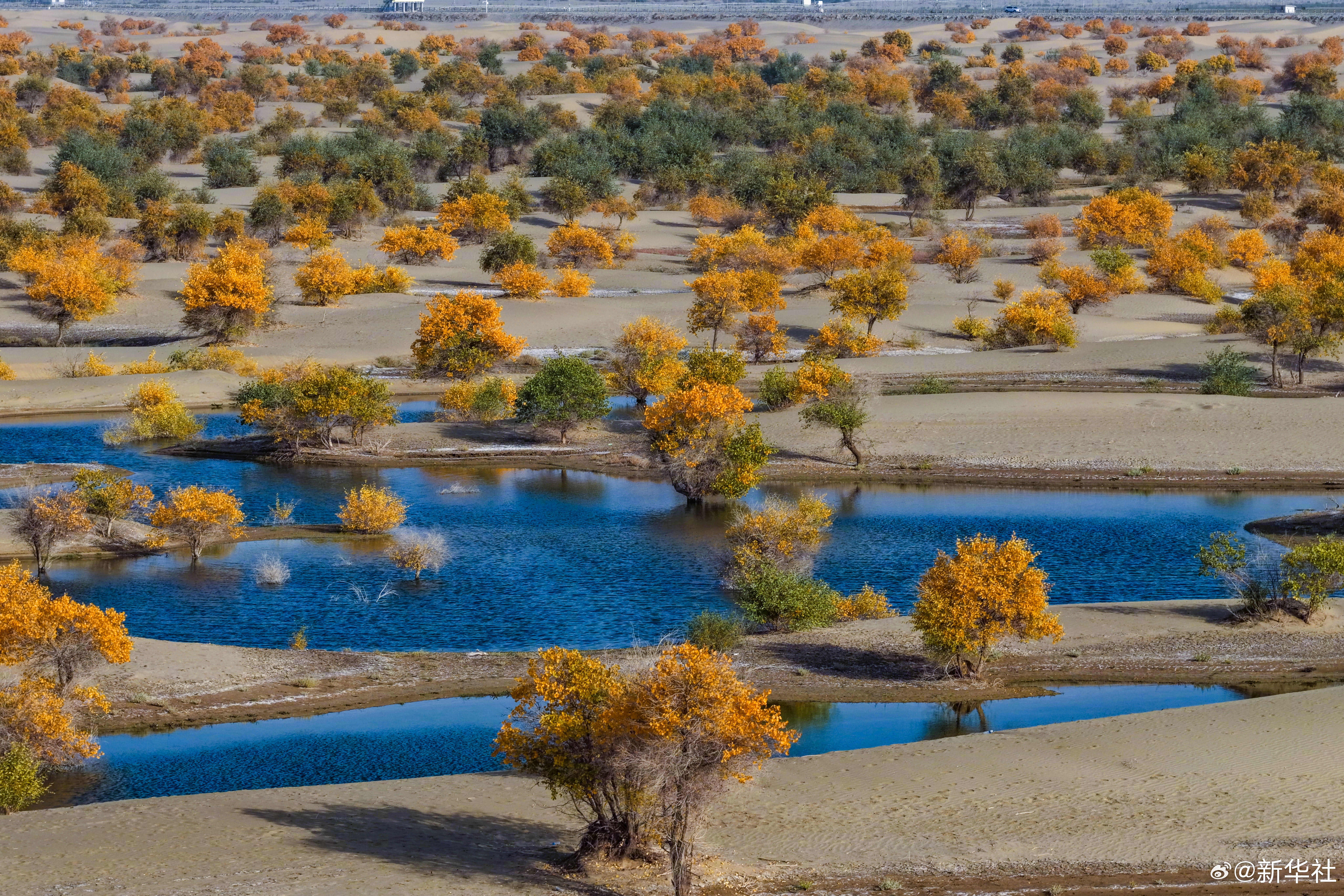 【收藏!#金秋胡杨绝美壁纸#】时下,新疆和田地区的胡杨迎来最佳观赏期,成片换妆的胡杨林与水天相映,共绘金秋美景。网友:#金黄的秋天真是治愈感拉满#!#新华社出图#(摄影:辛悦卫)
