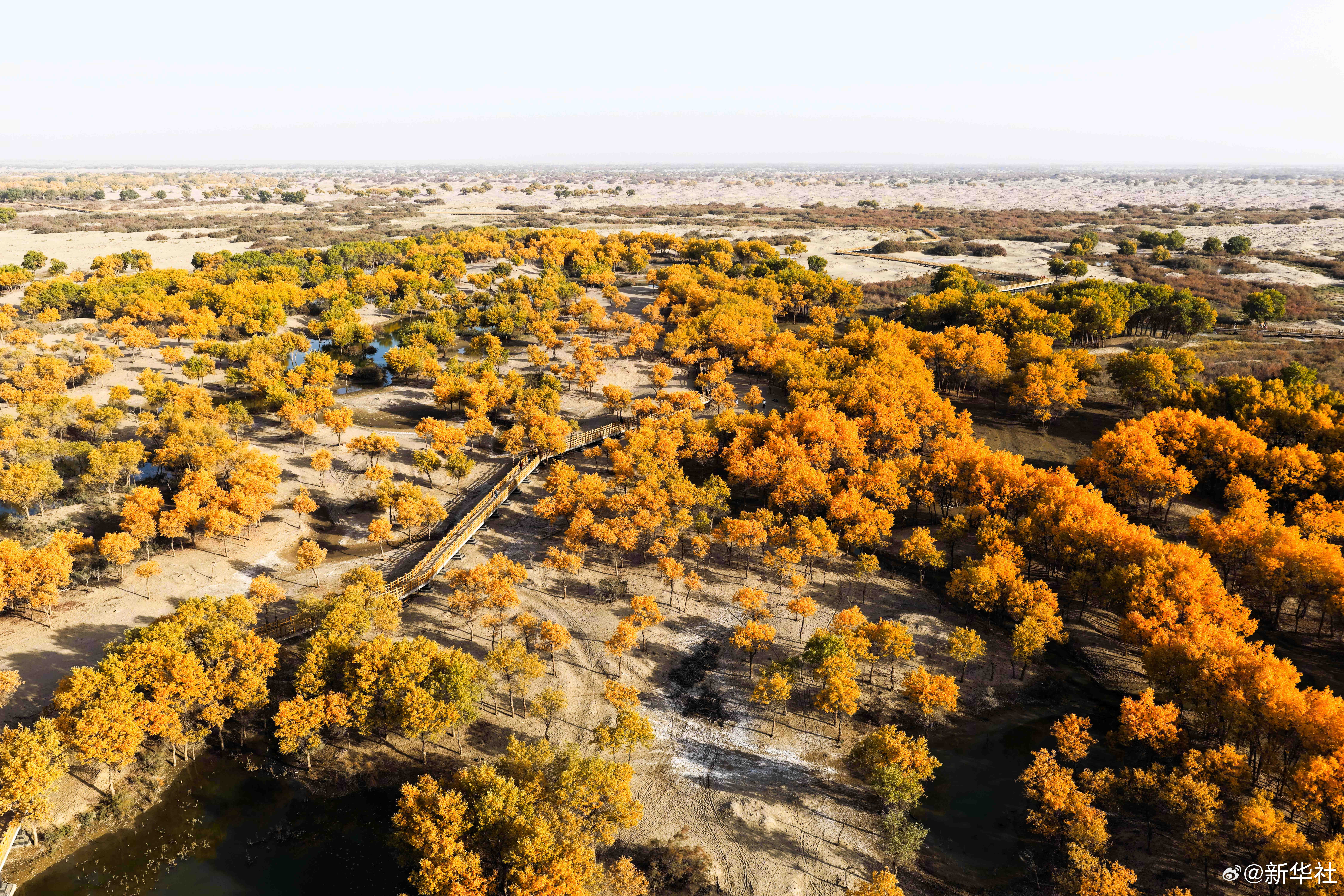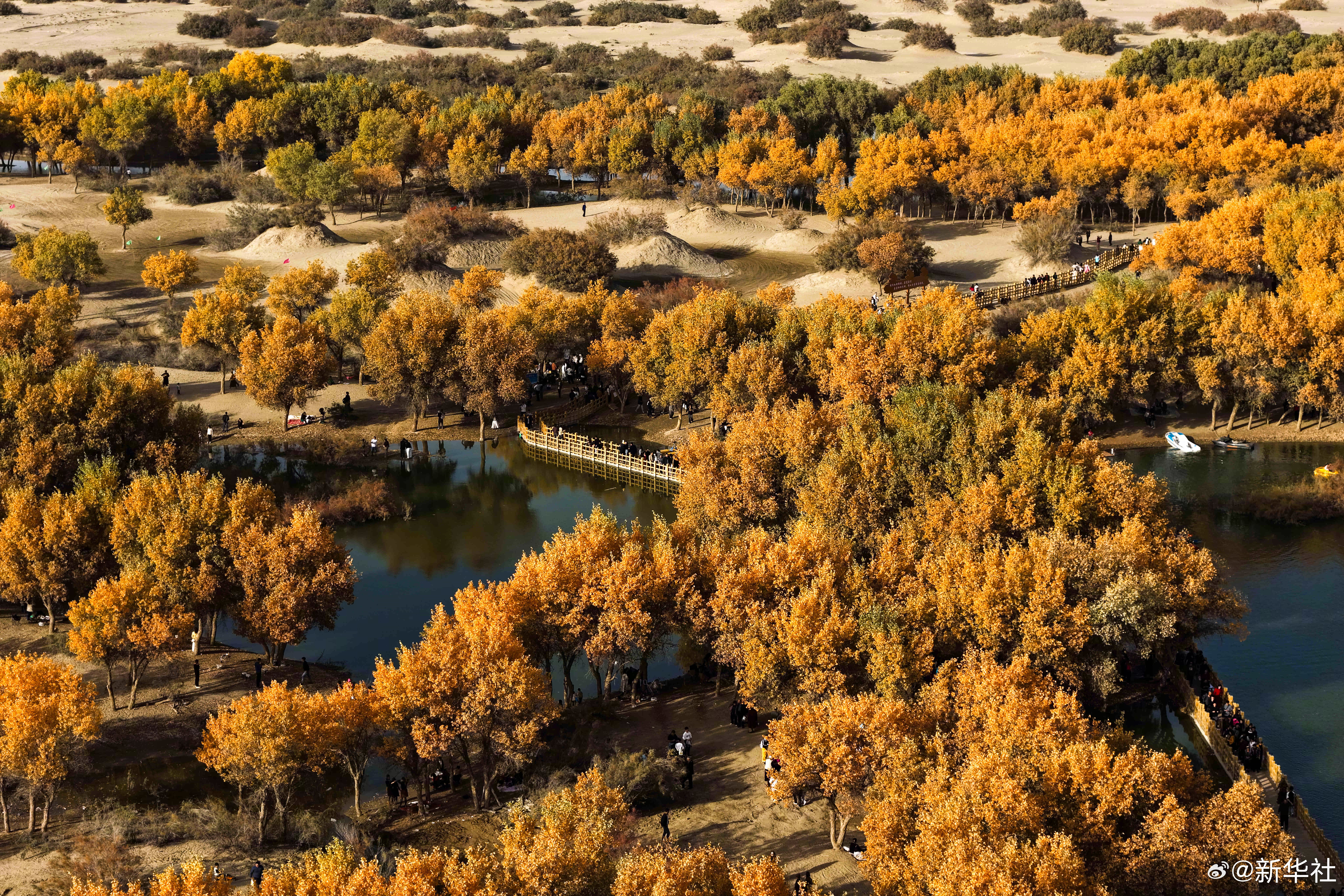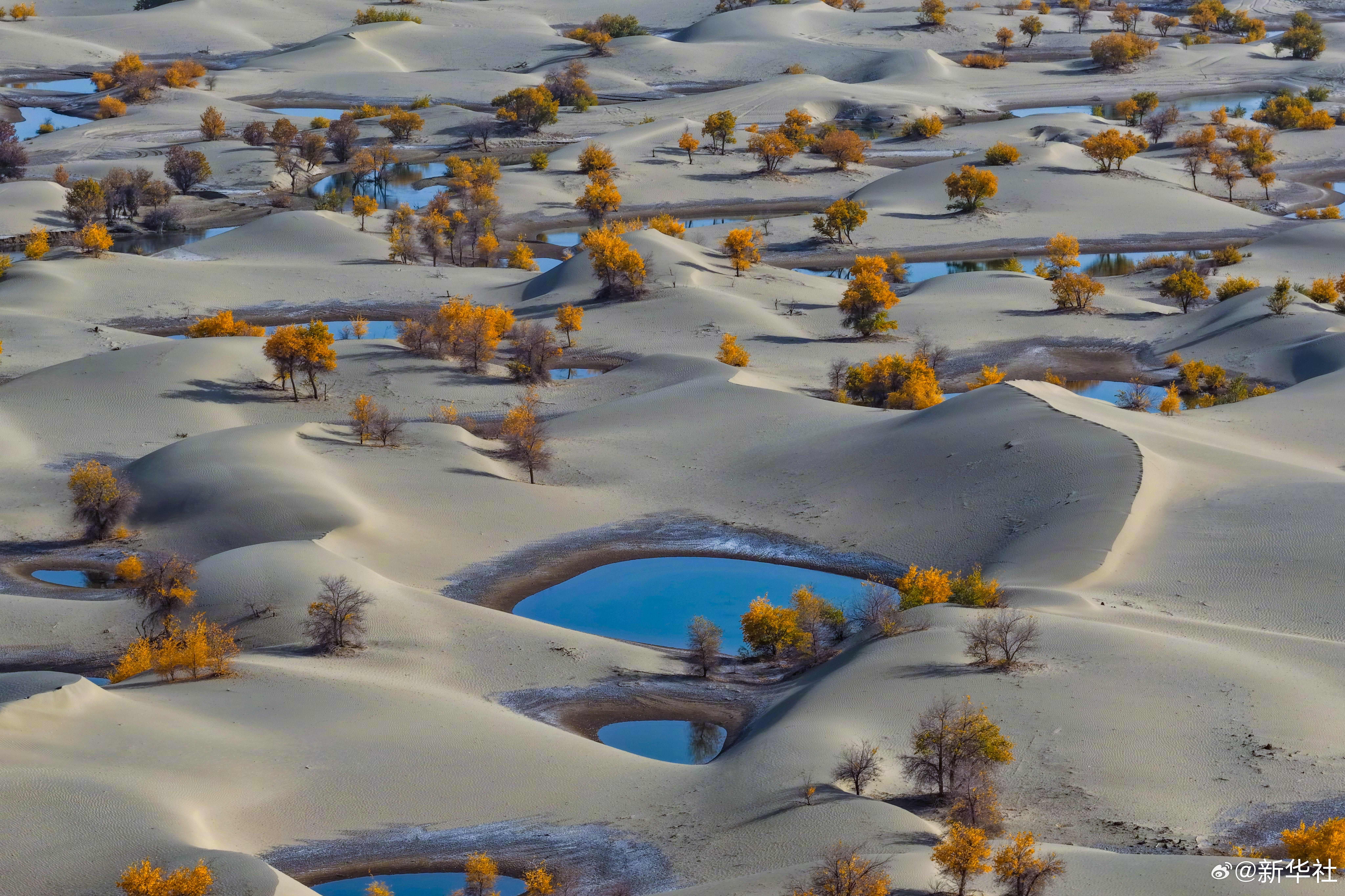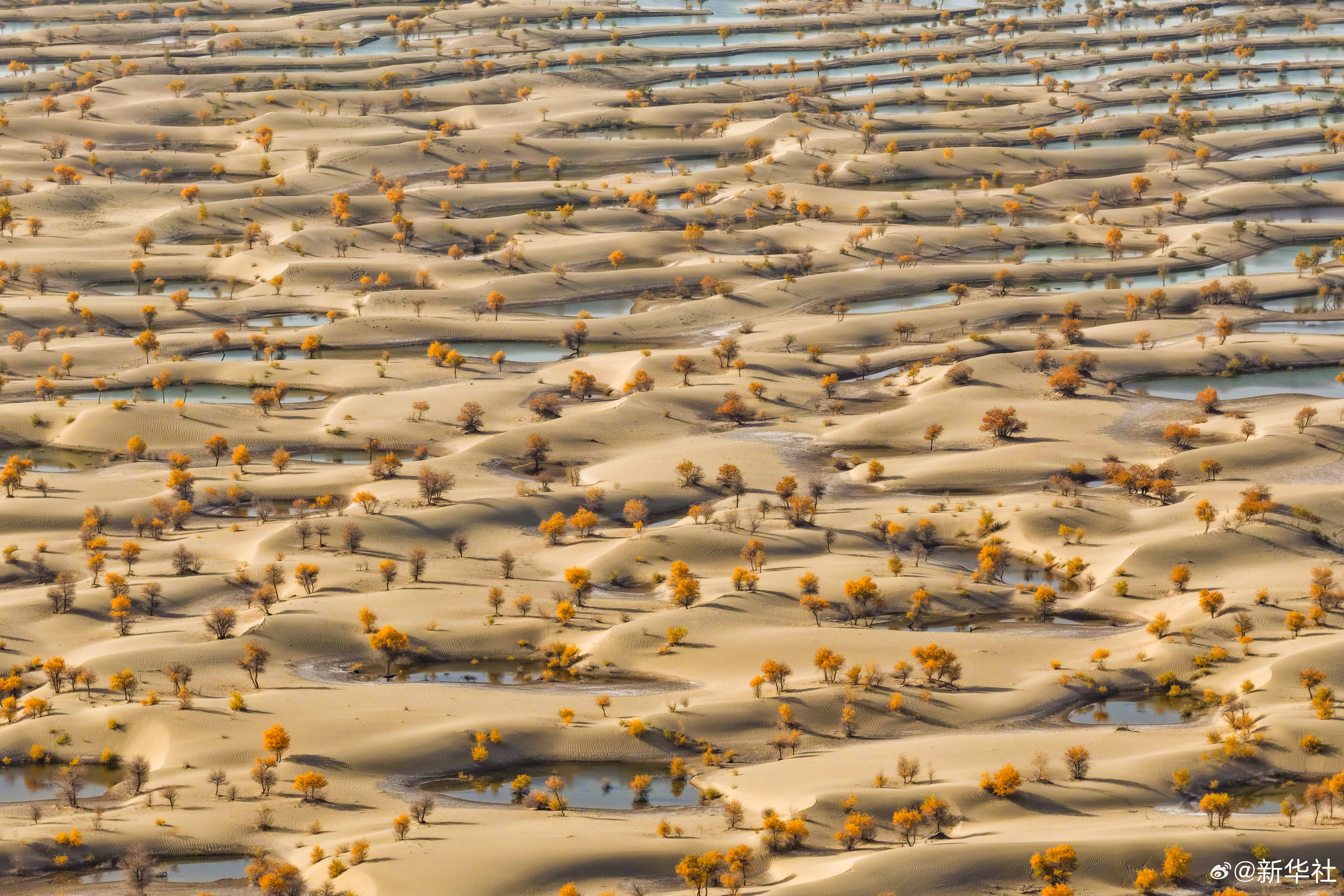 【收藏!#金秋胡杨绝美壁纸#】时下,新疆和田地区的胡杨迎来最佳观赏期,成片换妆的胡杨林与水天相映,共绘金秋美景。网友:#金黄的秋天真是治愈感拉满#!#新华社出图#(摄影:辛悦卫)