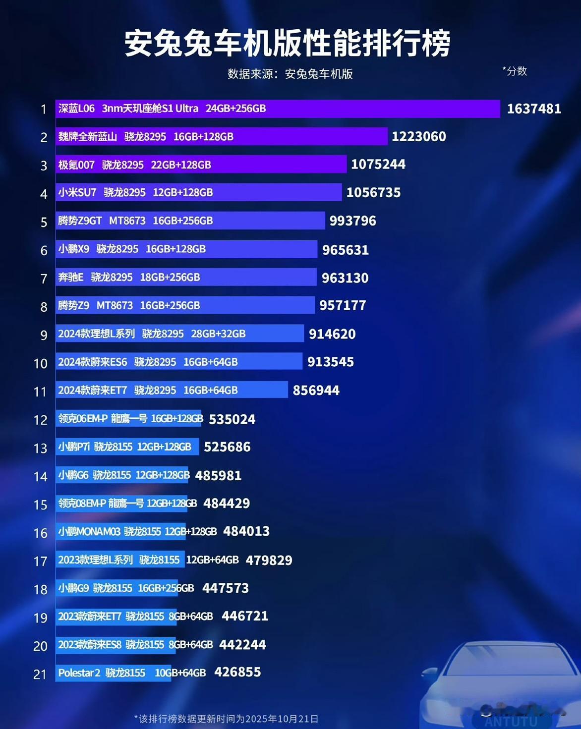 深蓝真的越来越强了,这次深蓝L06凭3nm制程芯片斩获安兔兔跑分第一,含金量远超同级5nm、7nm机型。这颗芯片不止是参数赢家,更让车机如旗舰手机般丝滑,导航、动画零卡顿。 其强大算力更支撑起“四图融合”实景导航,高架辨路、街巷穿梭都精准省心。更关键的是,它为长期OTA打好基础,未来解锁复杂功能无需担忧算力不足,硬件一步到位,出行体验持续升级。