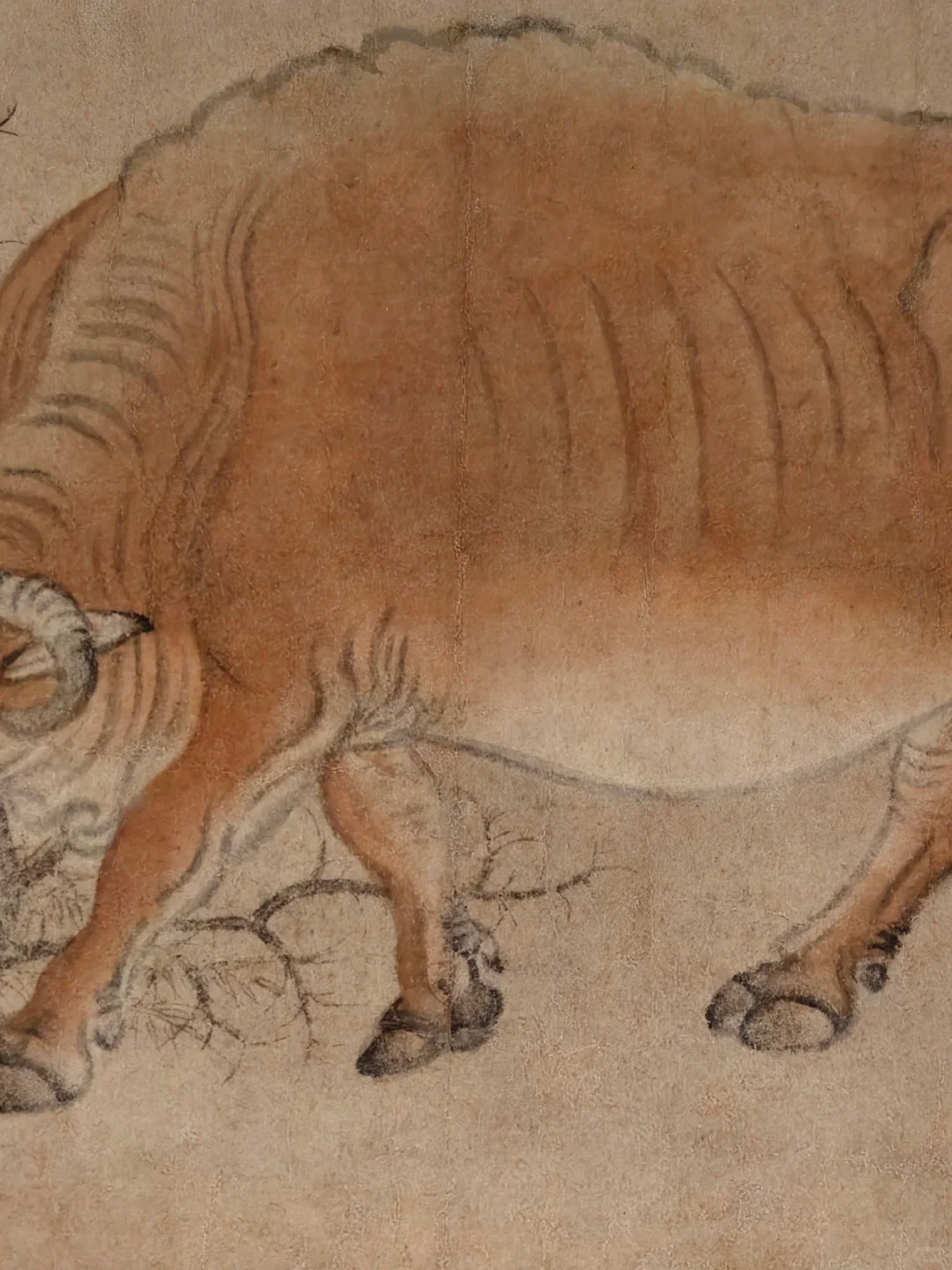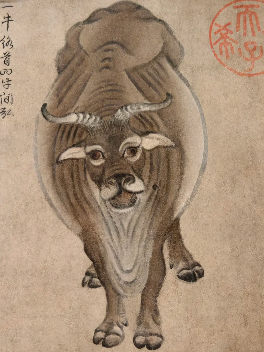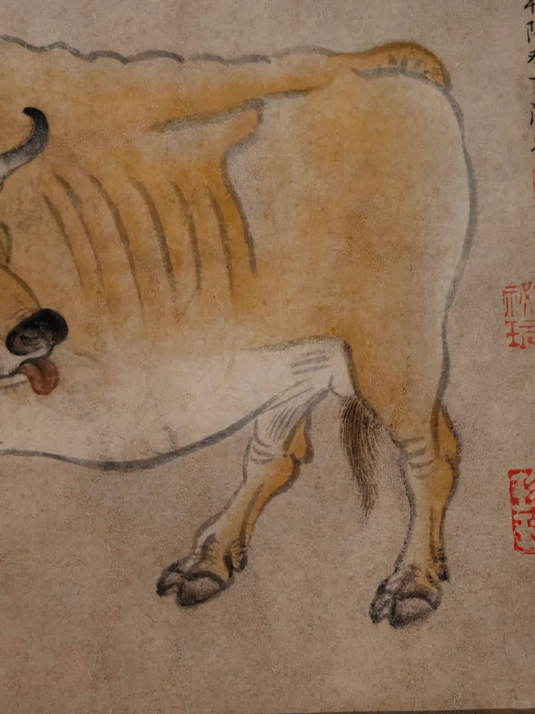 整体来看,画家以简洁的线条勾勒出,牛的骨骼转折、筋肉缠裹,头部的根根绒毛更是笔笔入微,还有最吸睛的牛眼直击灵魂。