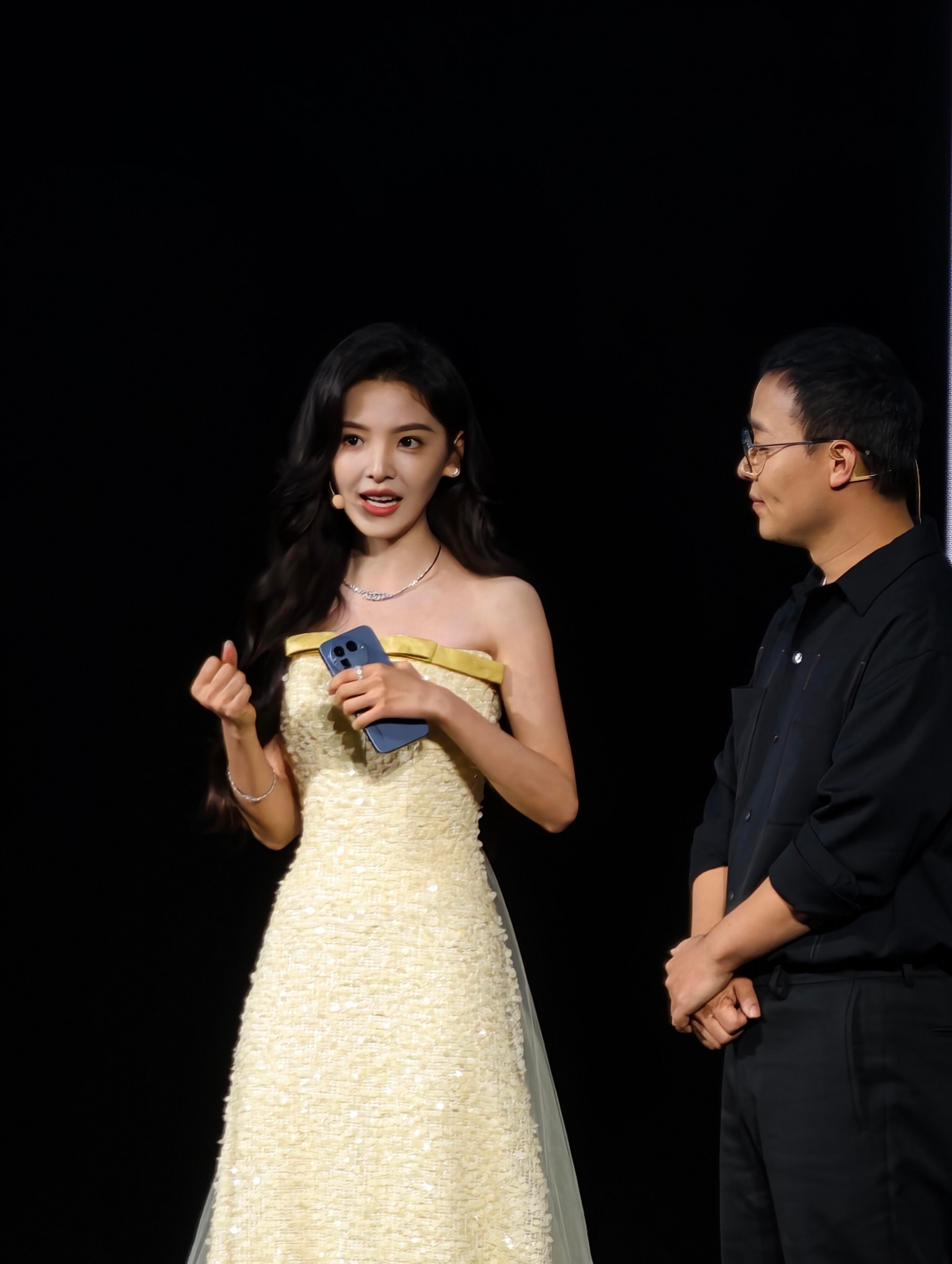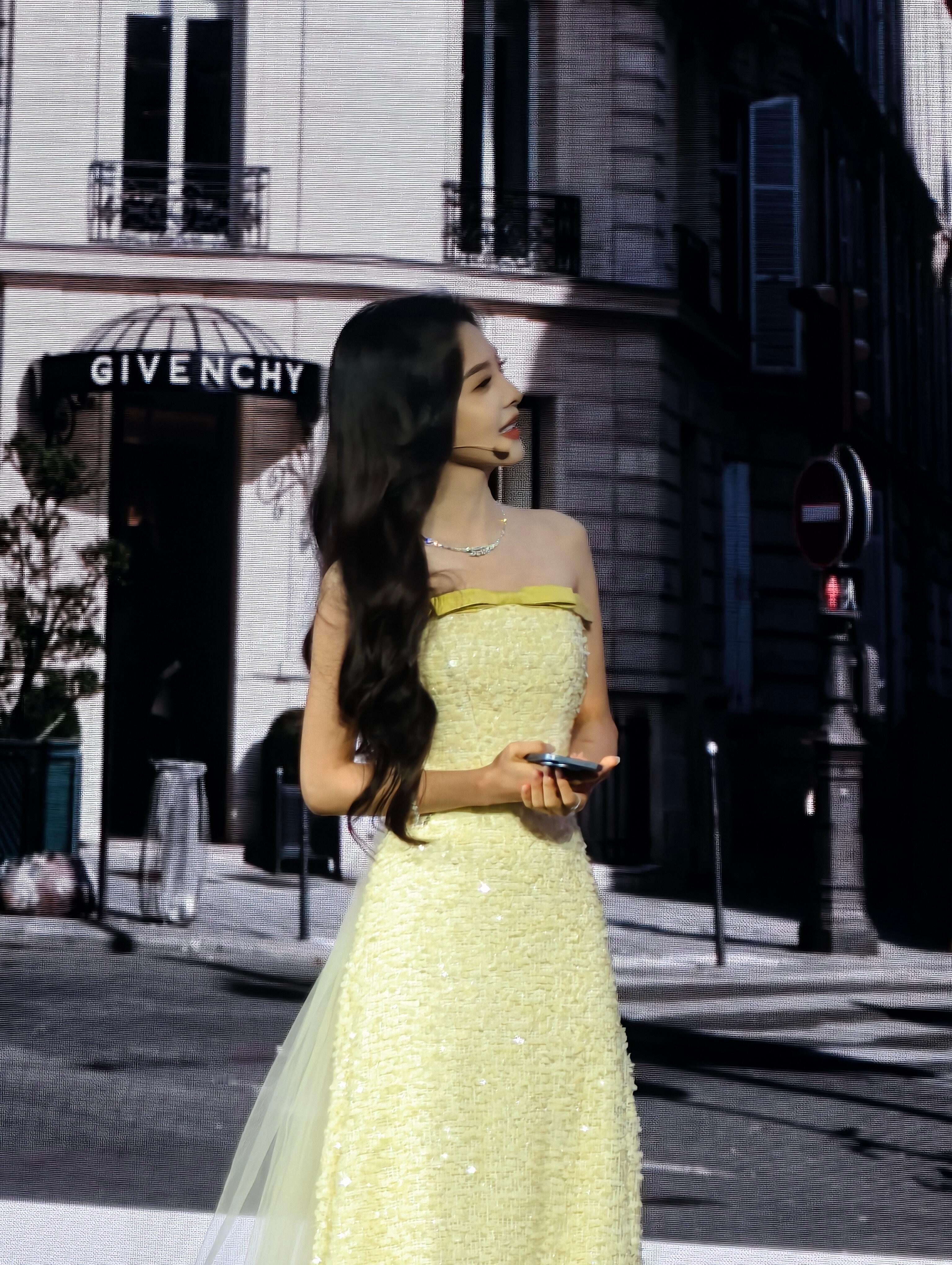 章若楠鹅黄色抹胸礼裙若楠你好美啊啊啊