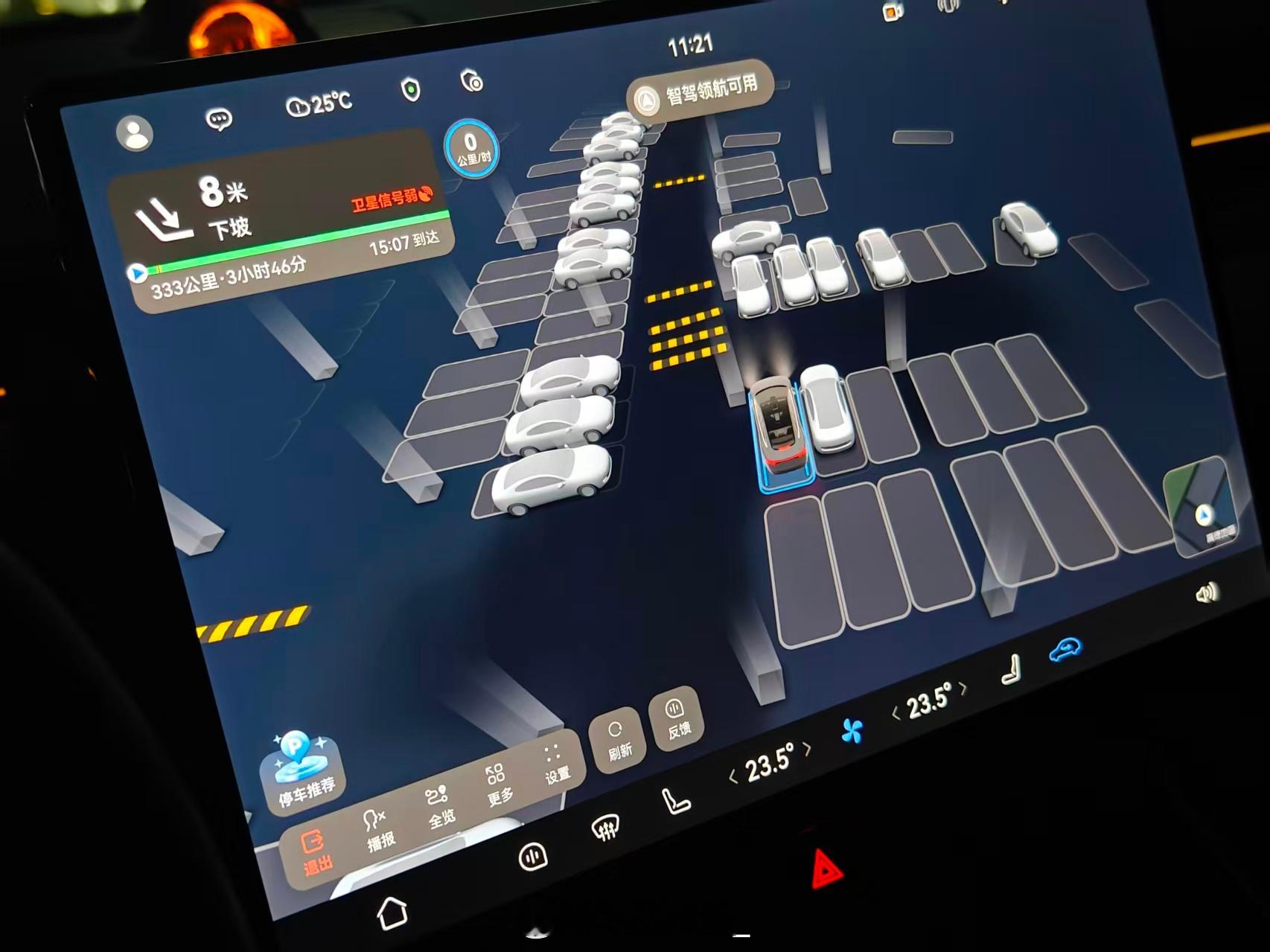 到达车位后也会和离车泊入打通,所以基本上从行车、漫游找车位再到离车泊入都一个界面完成。