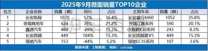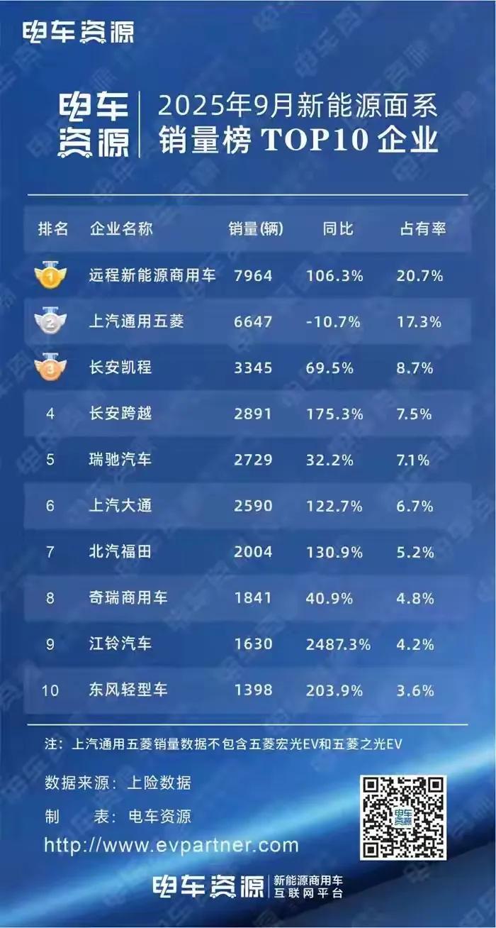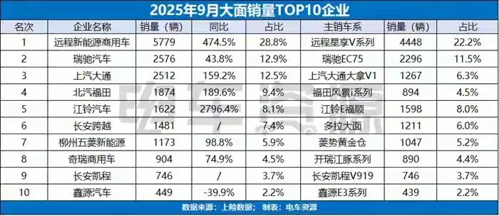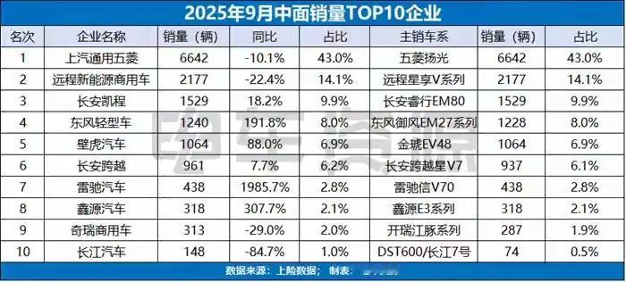 9月面系车销量前十企业中,东风轻型车等保持高速增长,增速超过100%。不过面系市