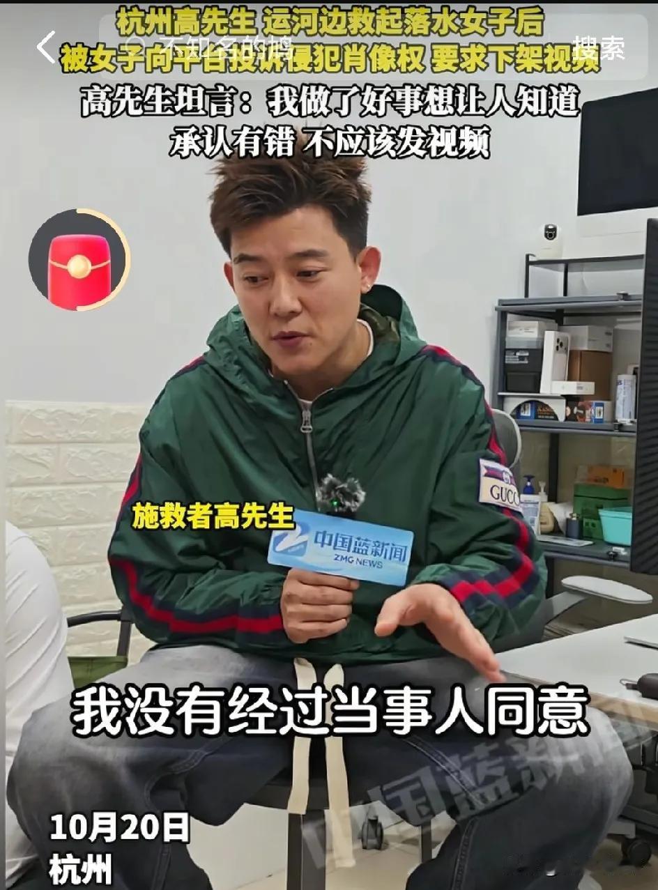 杭州高先生跳河救起落水女子, 脚踩碎石受伤还自己去打破伤风, 想发个视频求句夸奖却被举报侵权,这事儿看得人心里挺拧巴。 有人骂被救者忘恩负义,可律师说了,就算视频模糊,落水的狼狈样也算隐私,没同意就发确实越界了。高先生后来道歉认错,其实点透了关键:做好事值得夸,但夸的前提得尊重别人的体面。 善举和隐私从来不是二选一。不是说救人了就握有“曝光权”,也不是维护隐私就是否定善意。高先生打码重发的做法就挺好,既守住了善意的温度,也给了别人尊严。 真正的正能量,从来不是把别人的窘迫当谈资。你觉得被救者该先道谢再提要求,还是高先生一开始就该考虑打码?来评论区聊聊~