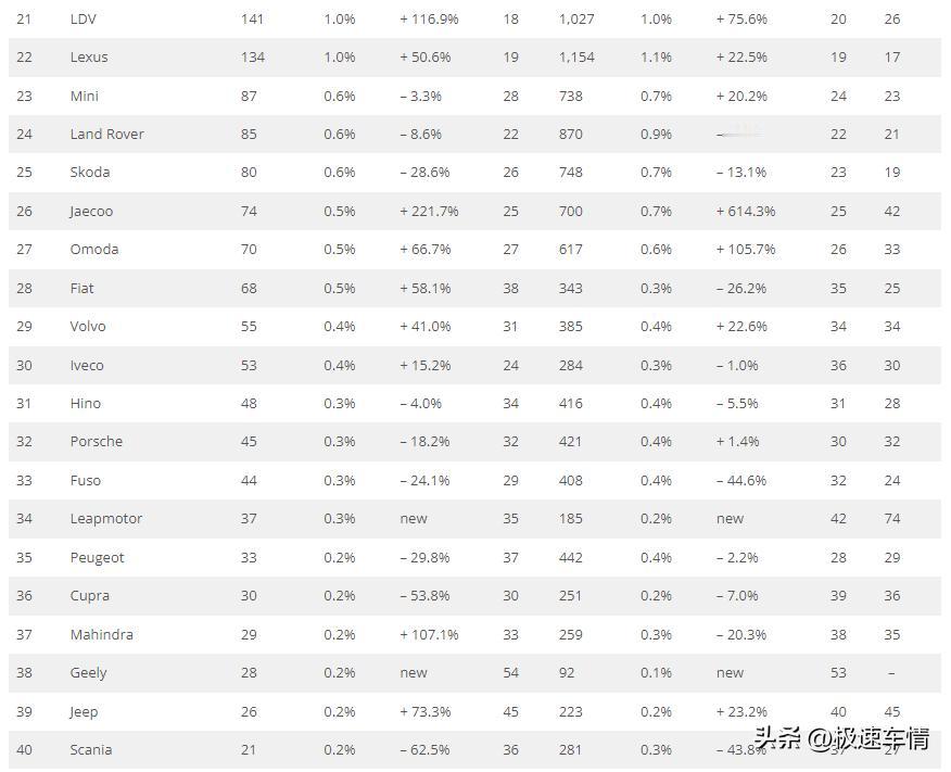 9月,新西兰车市延续高增长。名爵、长城、奇瑞、比亚迪等中国品牌的高增长与排名跃升