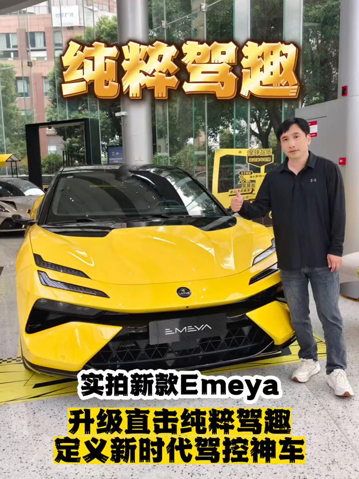 实拍新款Emeya,升级直击纯粹驾趣,定义新时代驾控神车。 大家好,今天又到了探店时刻,在我身后的就是莲花旗下的纯电超跑GT新款Emeya,今天就来近距离感受它的魅力。 ·首先来看一下外观,采用了驭风美学概念,整车线条就像被风雕刻过的一样流畅,鲨鱼鼻的造型搭配双层日行灯,战斗感十足。更厉害的是空气动力学设计,车身遍布了主动气道,风阻系数只有0.21。 ·来到车尾,最吸睛的就是主动的双层尾翼,它开启时就相当于给车尾装了一个隐形抓地力发生器,让高速过弯更加稳如泰山。 ·现在坐进了驾驶舱,来聊一聊性能。Emeya提供了两种动力版本,入门版就有612匹马力,零百加速4.15秒,而顶配的900车型更是达到了918匹马力,零百加速仅需2.78秒,堪比百万级的超跑,这你受得了吗? ·更值得一提的是它的智能主动控制系统,这套系统将莲花77年的赛道调校经验转化为了数字算法,能够实时协调车辆六个维度的动态。至于主动后轮转向系统,能够让5米长的车身在转弯中灵活的像紧凑型车,而主动稳定感的响应速度只要2毫秒,通过减速带时既能保留路感又不会颠簸难受。 ·中控的这块15.1英寸的OLED屏,操作非常流畅,搭载了双高通8155芯片,支持4区语音交互。更震撼的是前方这块55英寸的AR-HUD,能把导航、限速信息直接投射在风挡上,开车时都不用低头看仪表盘了。 ·座椅也暗藏玄机,切换到运动模式后会自动加紧驾驶员,配合KEF音响的声浪模拟,瞬间点燃驾驶激情。 ·后排还配备了分区智能天幕,每个乘客都能独立调节透光度。 在一番十八,应该说新款的Emeya不仅是一台能下赛道的性能机器,更是兼顾日常使用的智能座驾,起售价53.8万元,确实很像。如果想追求极致驾控,又不愿意妥协豪华体验,那么它绝对是这个价位段不容错过的选择。 我身后的这辆Eletre,同样是新款,这两款新车虽然定位不同,但共享了莲花对于驾控本质的坚持,两者都用实力证明了莲花在智能汽车时代不仅不会被电动车浪潮所吞没,反而会成为定义驾控新高度的引领者。正如莲花CEO冯擎峰所言,原创精神会开启时代,而历史会记住原创者。