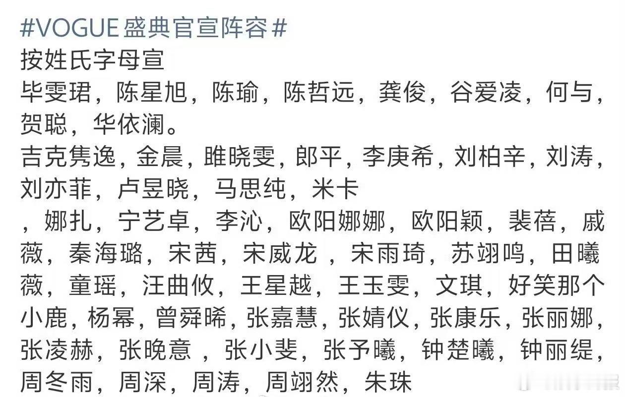 咖位小的没有被邀请俺真的不中了,刘冲VOGUE20周年没来的艺人还需要录制请假