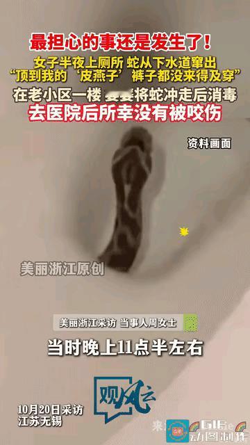 女子晚上11点多起来上厕所,当她坐在马桶上正想要痛痛快快的解决人生大事的时候,突然感觉有什么东西窜出来顶了一下她的“皮燕子”,女子立马起身查看,这不看不知道,一看吓一跳,只见一条黄绿色的蛇正盯着自己看,女子顿时吓得一蹦三高,裤子都来不及提就跑了出去,生怕跑的慢了蛇追出来咬她。 网友评论: 之前也有这样的情况。马桶盖最好不用的时候就盖上。上厕所掀开马桶盖前用水冲一下,这样相对安全一些。 她已经有心理阴影了。以后上厕所都会胆颤心惊!全过程都德睁大双眼,死死盯着里面,还不敢喘大气。解手一次,无论大小便,都如同上一次地狱般地煎熬难耐。 我记得当兵那会我们挖猫耳洞,一条蛇掉下来落在我战友后背上,当时我反应超级快,一铁锹把我战友连蛇拍在地上。 厕所遭遇蛇袭确实恐怖!老旧小区管道隐患不容忽视,建议低楼层住户加装止逆阀防范。此事虽属小概率事件,但做好基础防护很有必要。