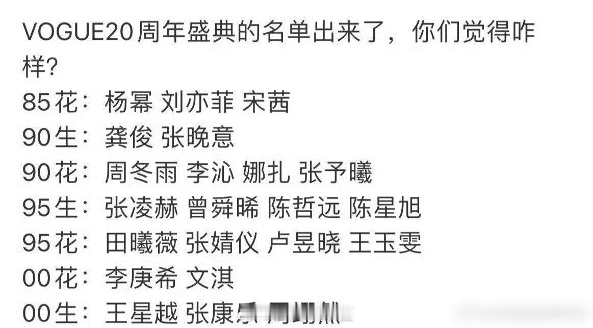 VOGUE20周年盛典的名单出来了,就2⃣️卫大咖[疑问]