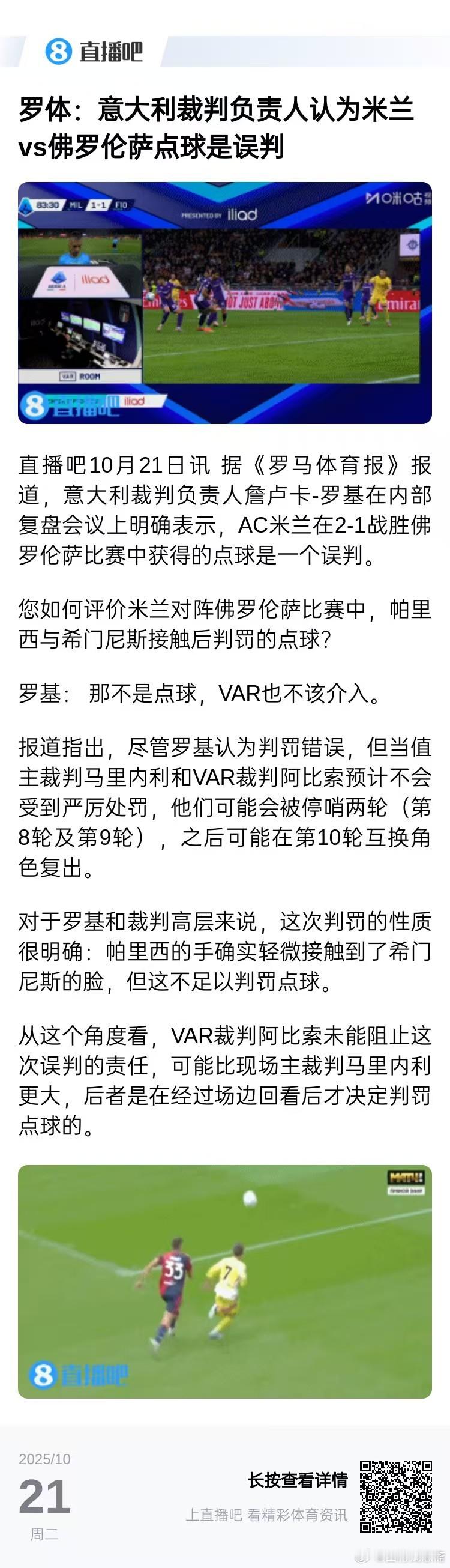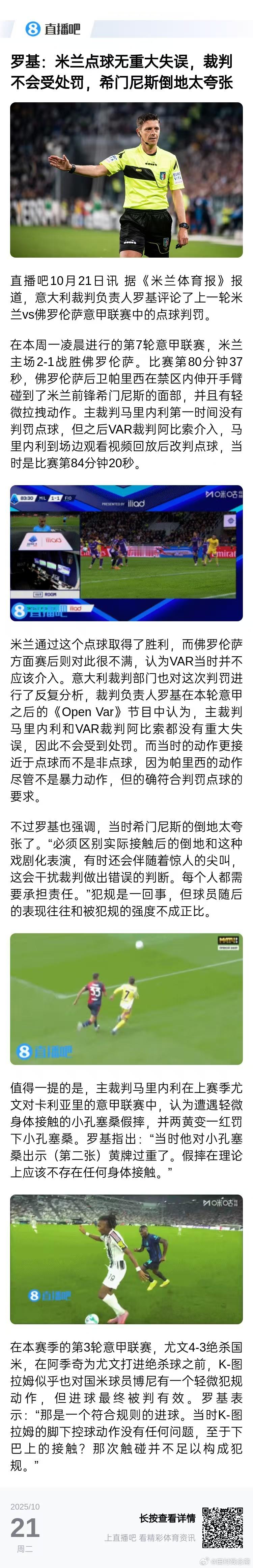 AC米兰[超话]希门内斯的点球越来越好玩了,连罗生门都出来了,不过“内部复盘会议”还有采访是挺好玩的,不知道有没有意大利原文,欺负我们AI不懂意大利文就不合适了,毕竟不管对不对,三分又不会跑,对吧?[doge][doge] ​​​