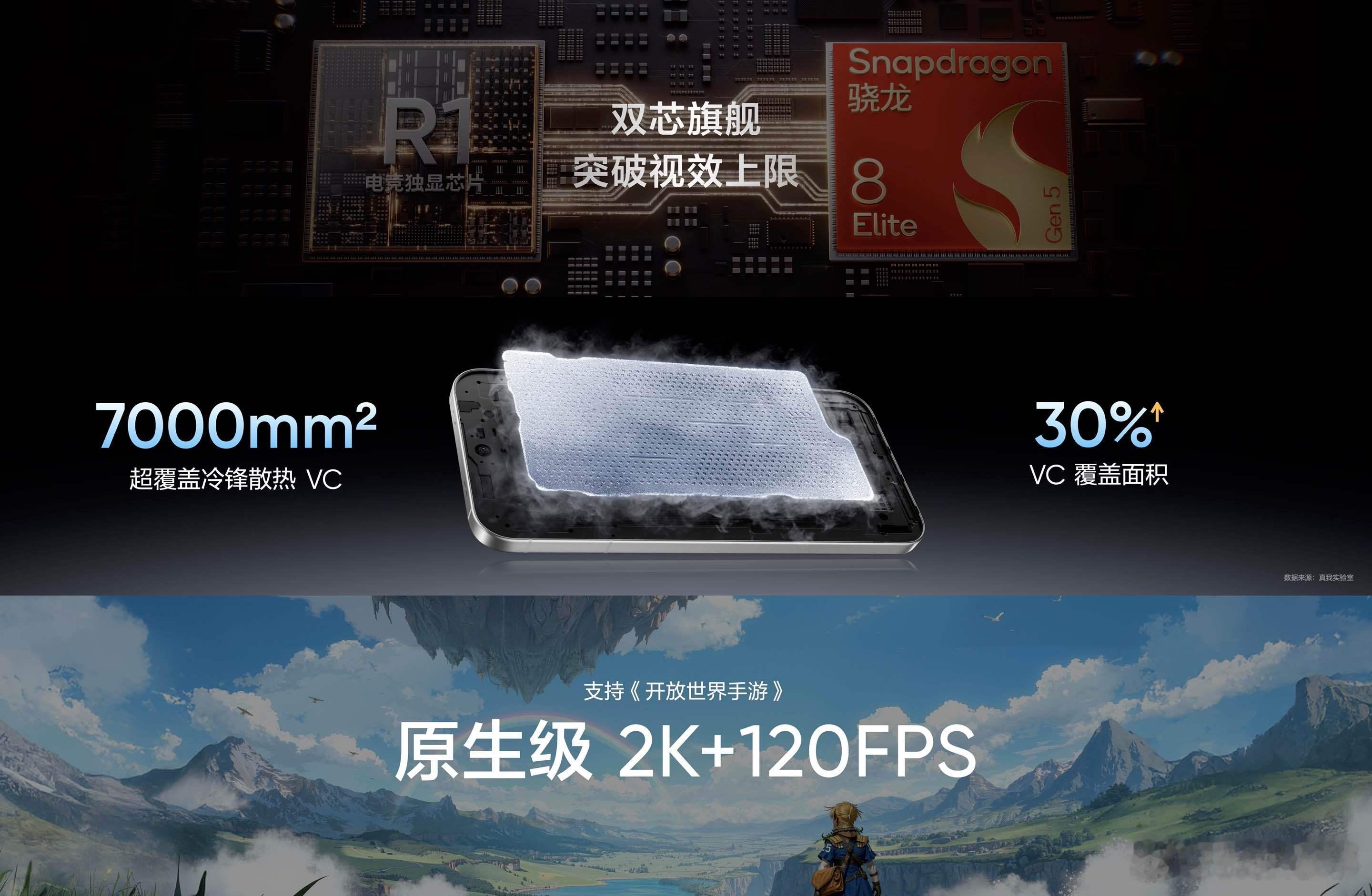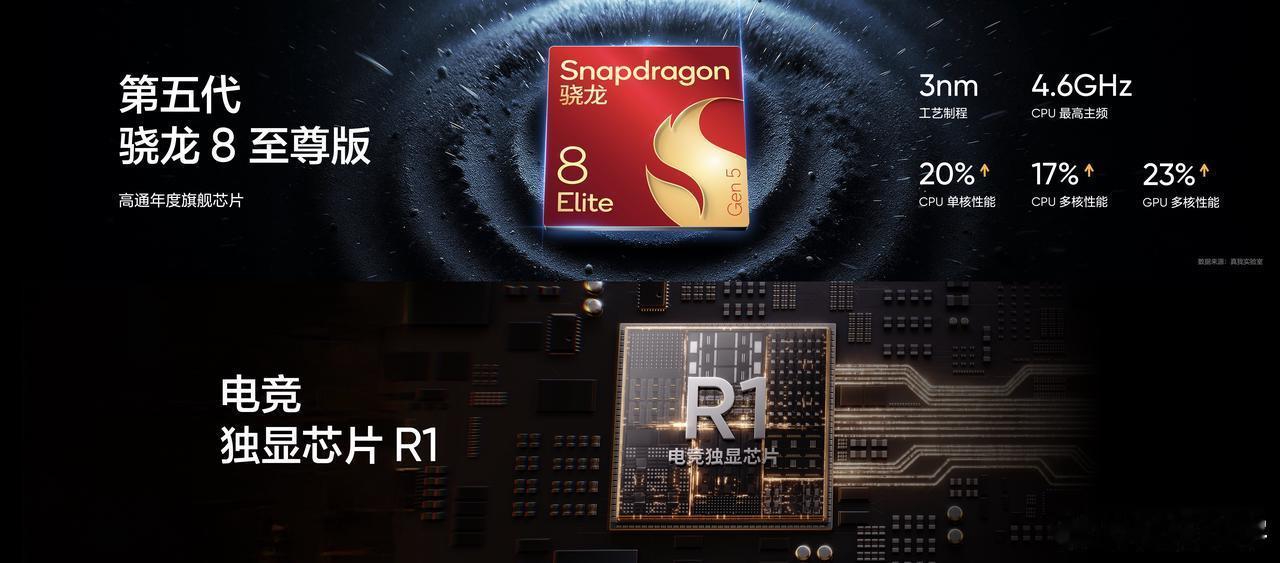 -第五代骁龙8至尊版+电竞独显芯片R1旗舰双芯加持,画质与流畅度双越级