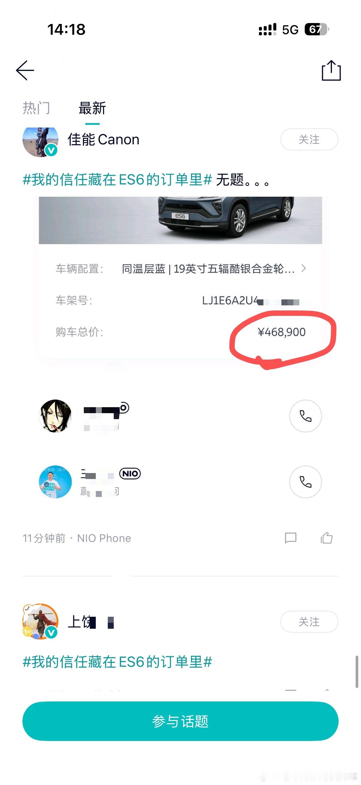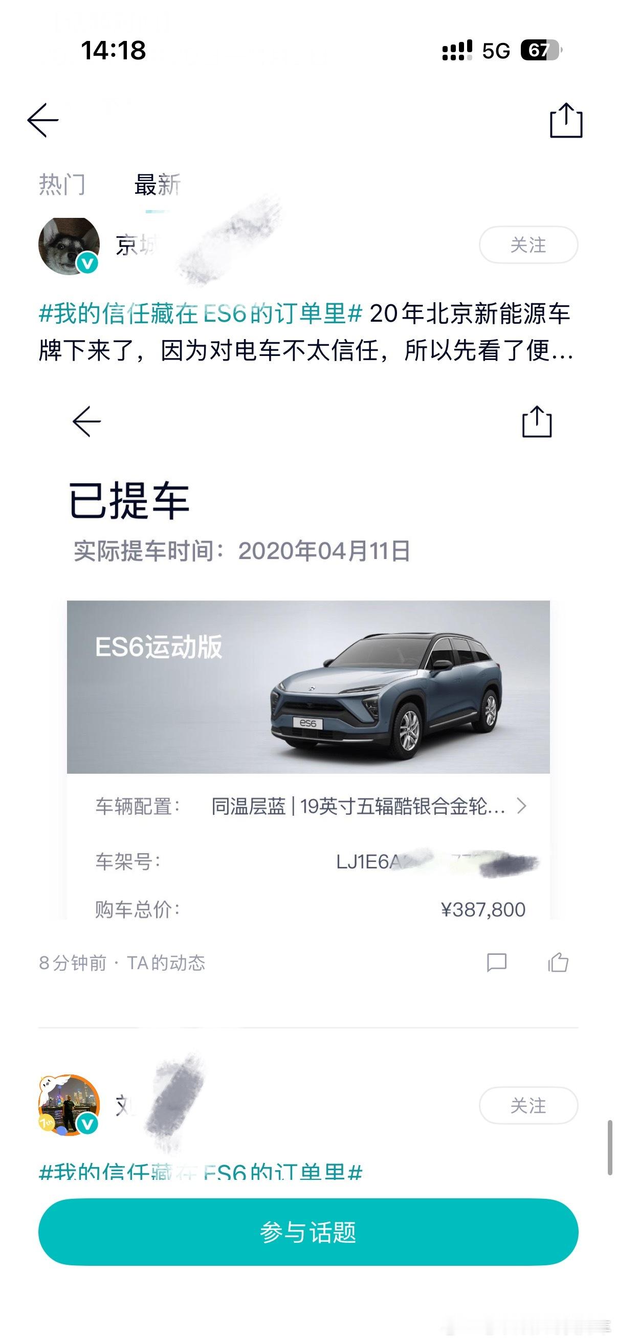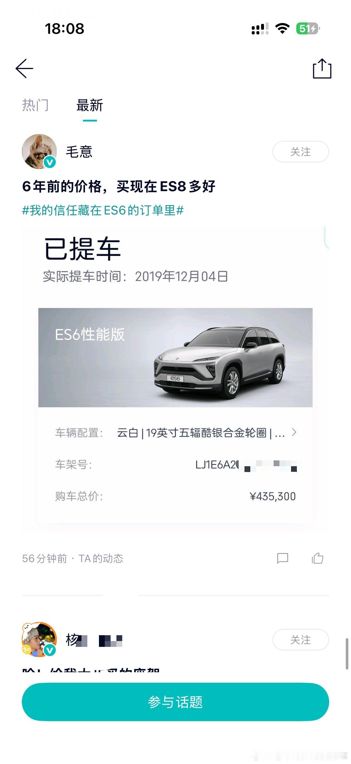 蔚来ES6近期迎来30万台交付里程碑,蔚来在车主社区里发起“晒当年购车订单”活动,不过跟帖画风一不小心变成了“韭菜争霸赛”,车主积极比拼谁当年的定车价格更高。