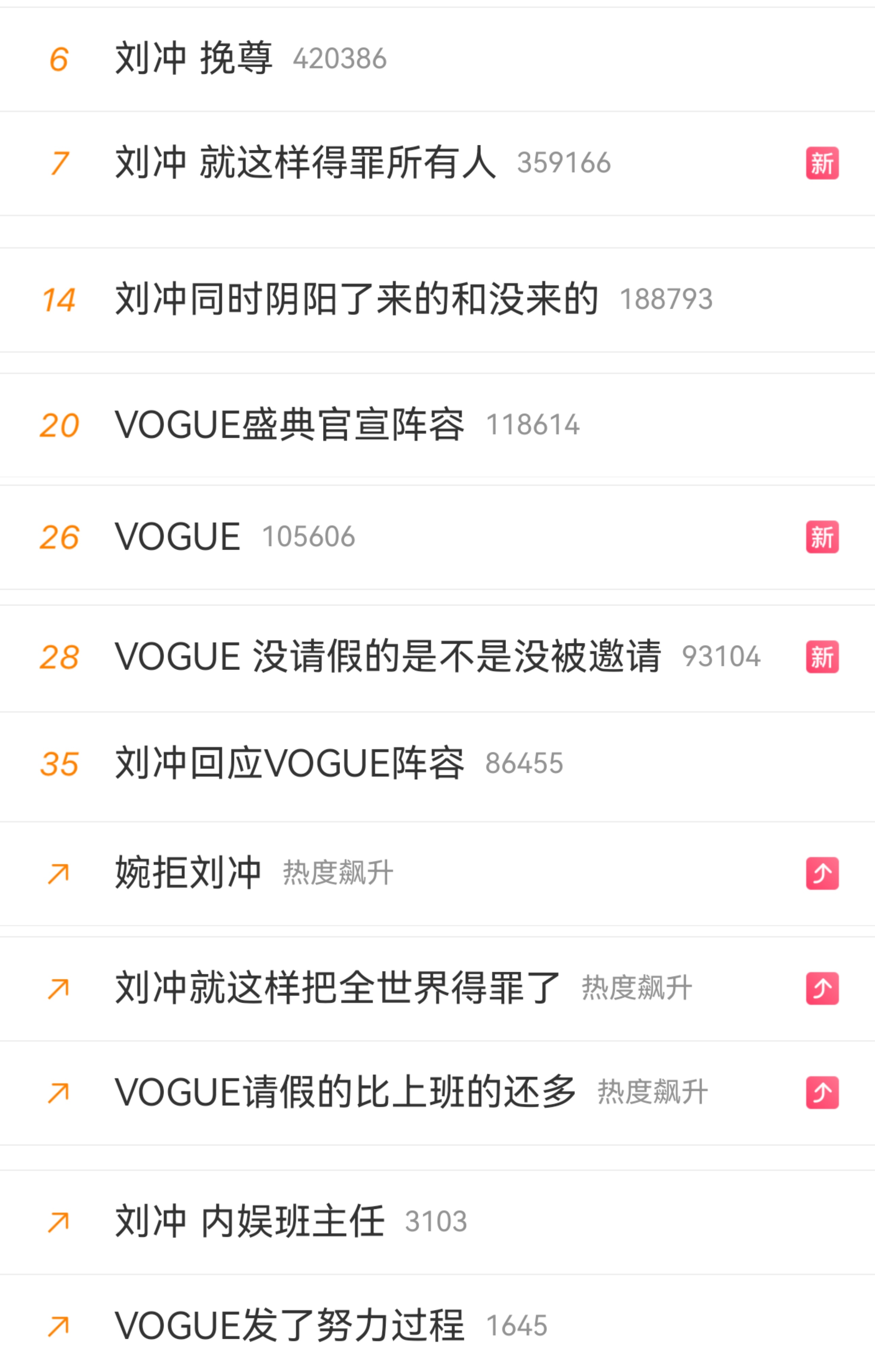 抬头看看烫搜,震惊!刘冲也算是入职窝瓜后连续两年成为时尚圈话题榜的“一哥”了,去年是凭借把时尚圈“三教母”聚齐震动品牌和时尚圈,今年是因为请不来人后又昏招频出得罪所有人,“想开了”又话题度拉满,真是一出大戏[笑cry]