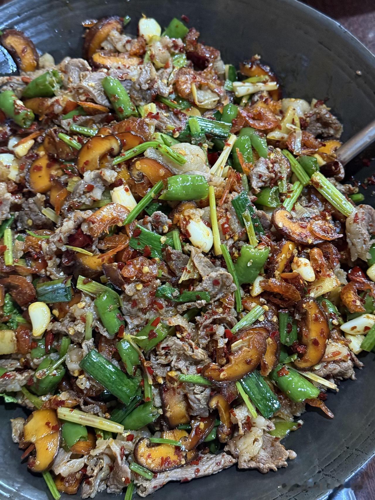 曲靖干锅牛肉!有“亿”点点震撼!!有特色的干锅牛肉,肉片很薄,搭配了很多虾米 香菇,又是费米饭的一锅! 这家店的曲靖干锅牛肉一上桌,香气瞬间在空气中散开。薄如蝉翼的牛肉片泛着诱人的光泽,每一片都浸满了浓郁的汤汁。 那些搭配的虾米小小的,却带着大海的鲜美,和牛肉的醇厚完美融合;香菇吸饱了汤汁,咬一口汁水四溢,口感十分丰富。 吃的时候,先夹起一片牛肉放入口中,嫩滑的口感在舌尖上绽放,微微的辣味刺激着味蕾,让人欲罢不能。再搭配上米饭,牛肉的香味和米饭的软糯相互交织,一口接一口,根本停不下来。 店里的环境也很不错,干净整洁,服务员热情周到。如果你来这个地方,一定不要错过这道曲靖干锅牛肉,绝对会让你吃得满足又开心!