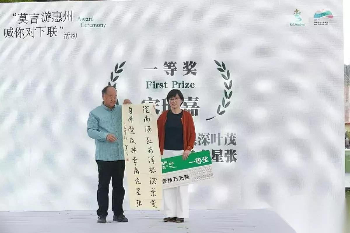 莫言出的上联,被21岁小伙对上了。 还拿了10万奖金? 今年6月莫言站在惠州