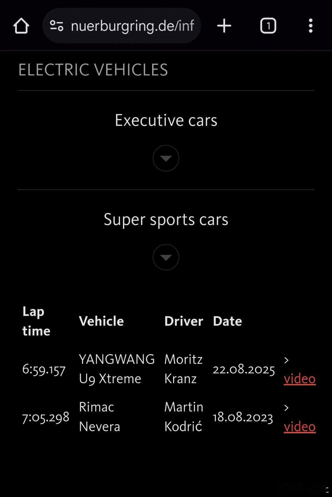 仰望 U9 Xtreme 以 6 分 59 秒 157 的成绩,正式登陆纽博格林北环赛道 Electric super sports cars 榜单,这是仰望 U9 Xtreme 在纽博格林北环赛道作出的首个有效官方认证圈速成绩。