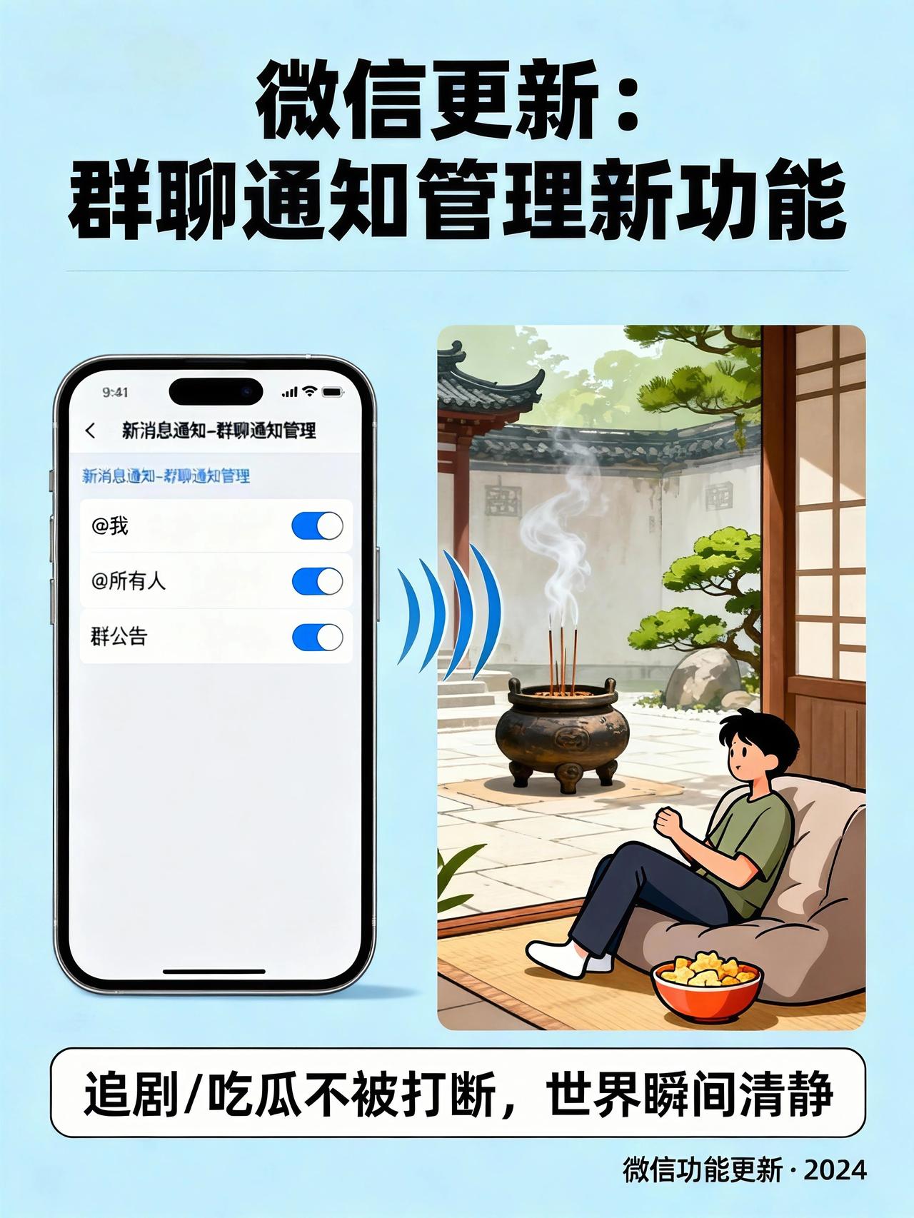 家人们谁懂啊!微信这次更新简直是救星下凡🎉!以前群聊就像个唠叨的老奶奶,天天@你、全员艾特轮番上阵,手机震得我怀疑人生😅。现在好了,直接给这些吵闹按了个“消音键”——关闭“@我”“@所有人”和群公告的通知开关,世界瞬间清静如禅院🙏。再也不用被无关紧要的消息打断追剧吃瓜的快乐时光啦🍿!这波操作,必须给微信点个大大的赞👍!微信新规解读 微信冷门功能 微信手机群 微信大bug 远程恢复微信 微信消息恢复 微信大版本更新 微信规则 微信功能小技巧 微信屏蔽好友 微信异常 微信延迟 微信排名 微信修改人数 微信群聊新功能