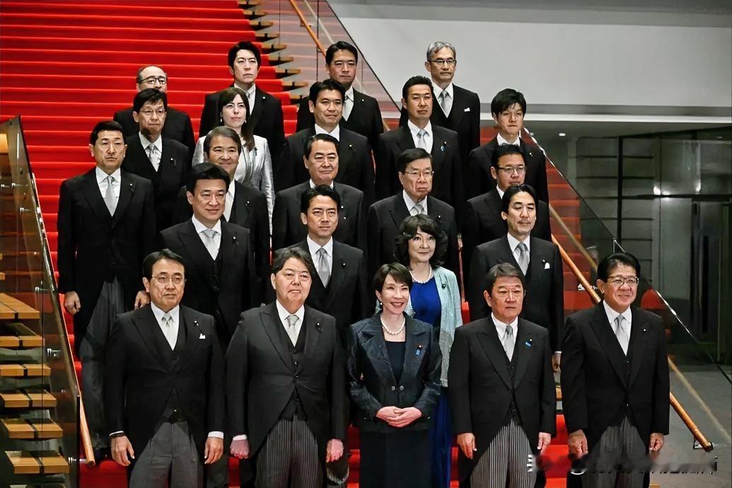 高市内阁合影!高市内阁于2025年10月21日成立,为日本自民党与日本维新会联立政府,日本维新会提供阁外支持。