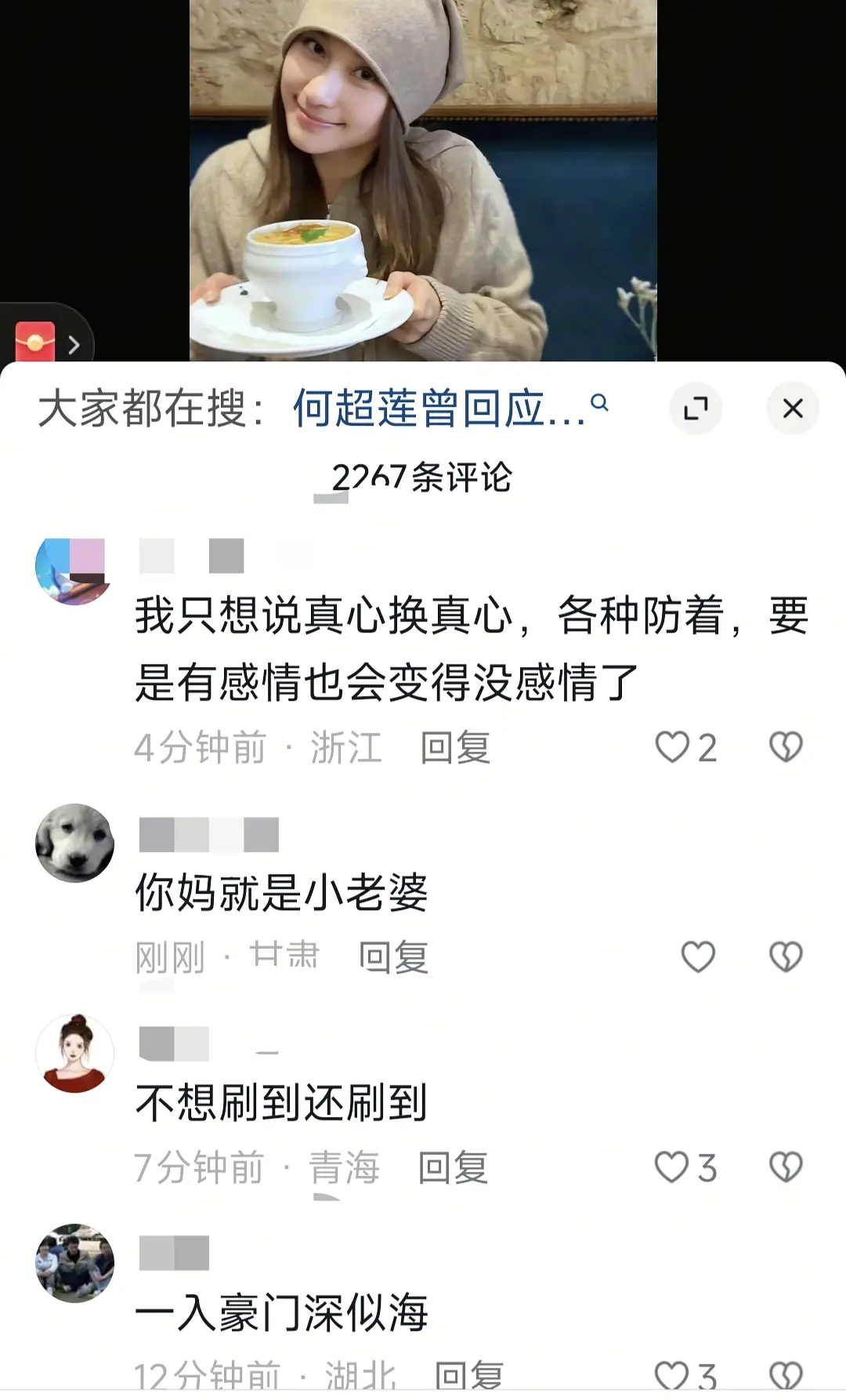 何超莲评论区 何超莲评论区被🫘人冲了[黑线],留给抖人每个月吻上的胖猫类型不多了,明明是窦骁自己上赶着入赘结果偷鸡不成蚀把米,换成是女明星,早就被嘲讽飞满天,一口一个捞女失败,别太i男了…