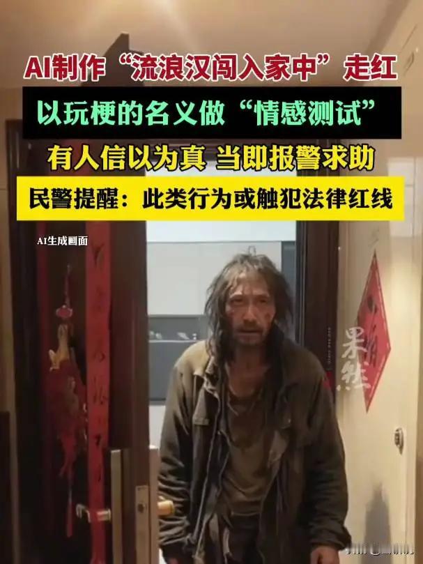 安徽,一女子为了测试自己的丈夫,趁丈夫在外聚餐时,用AI声称了一个流浪汉进入家中的视频,没想到,丈夫着急当真了,直接报了警,而民警赶到后却发现,竟然是一场闹剧。 当晚,女子刷到社交平台上流行的AI整蛊教程,见有人用生成的危险场景图片测试亲友反应,便动了效仿念头。 她趁丈夫在外与朋友聚餐,用AI工具合成了多张流浪汉卧坐家中餐厅,陌生人在客厅徘徊的图片,还故意配上慌张的文字询问“怎么办,家里进人了” 。 收到消息的丈夫瞬间慌了神,想到家中只有妻子一人,担心其人身安全,当即拨打110报警。民警赶到现场,仔细检查室内每个角落,却未发现任何陌生人踪迹 。 面对民警的询问,女子才坦言这是自己用AI生成图片搞的感情测试。民警当场对其进行严肃批评教育。 感情从不是“狼来了”式测试的产物,而应源于日常的真诚相伴;AI技术本是服务生活的工具,滥用则会沦为制造麻烦的隐患。当玩笑越过法律与道德的边界,最终只会得不偿失。