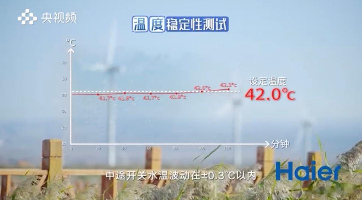 视频中,在10级大风下,海尔热水器火焰依旧稳定、出水恒温,连续保持2小时恒温运行,而且即便洗澡过程中开关水,温度波动也仅有0.3℃。