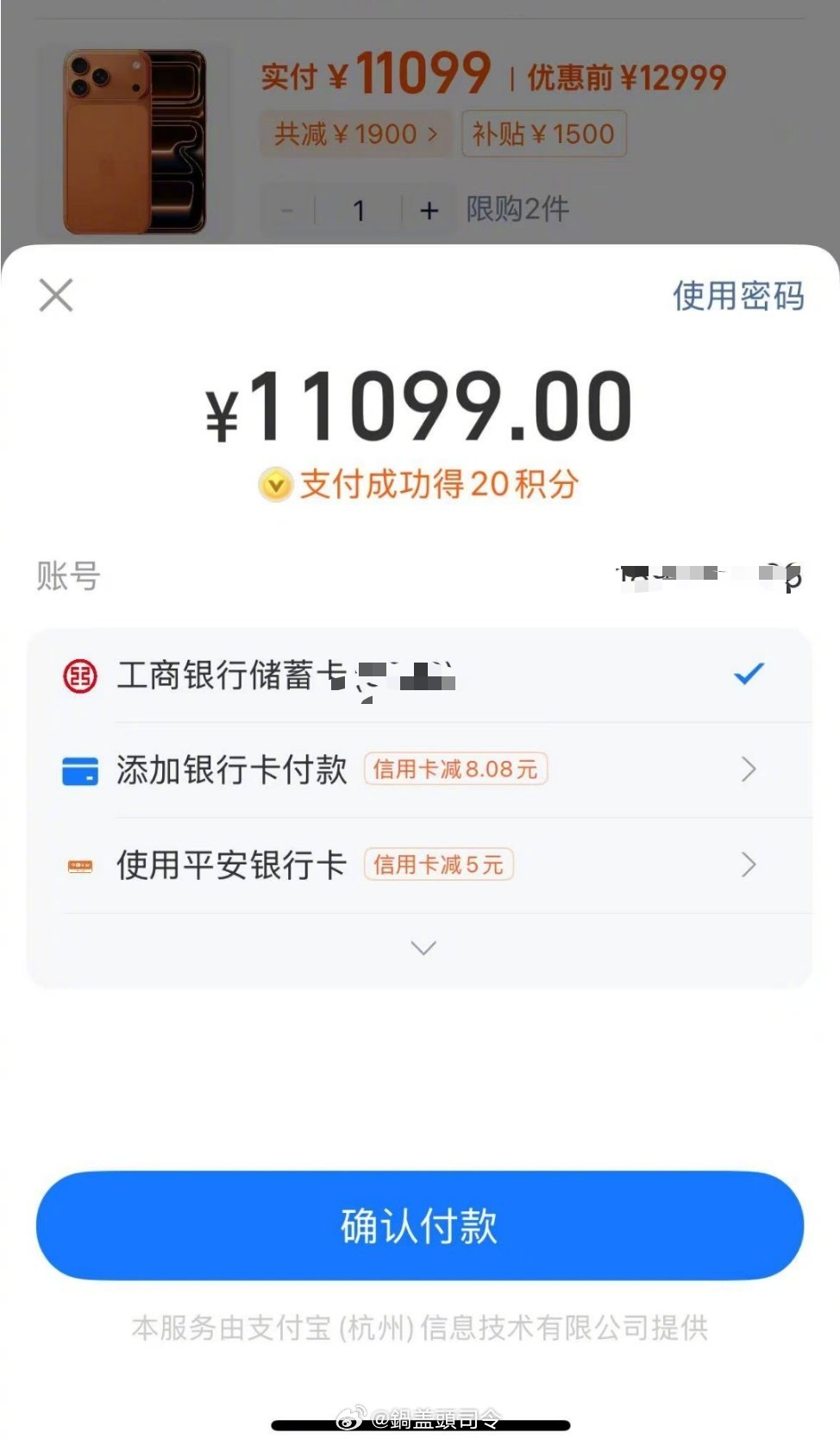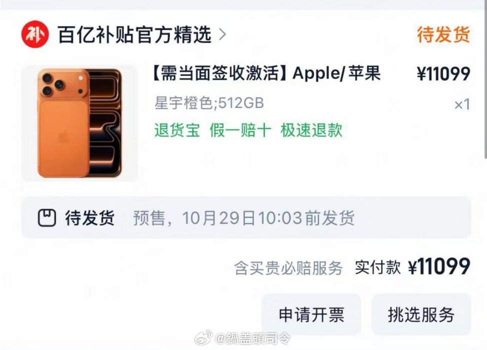 董事长鍋嫂发动众人在淘宝百亿补贴上帮她抢了一台橙色iPhone17PM,便宜了9