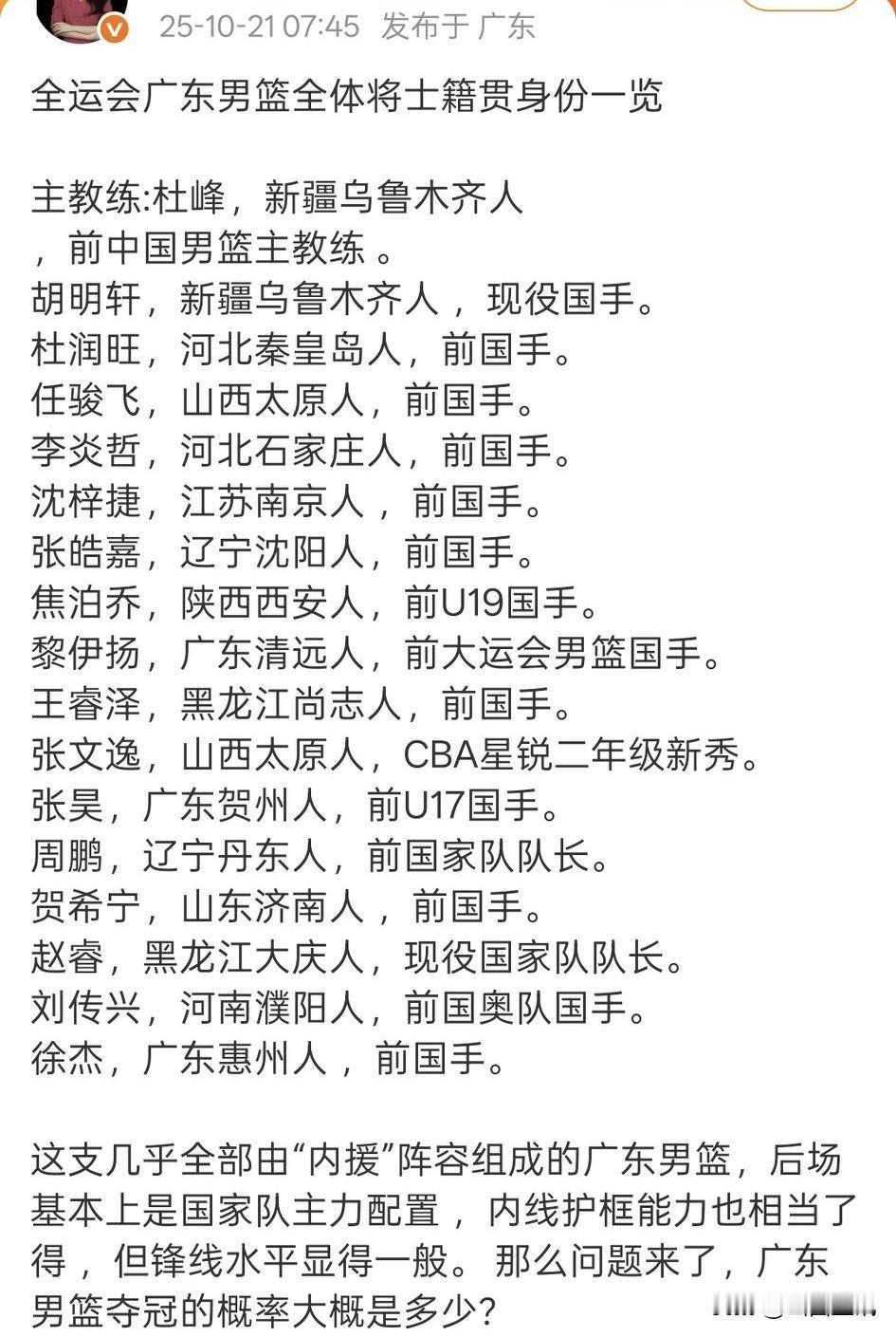 刘传兴加盟广东男篮全运会篮球队! 真没想到,广东男篮打个全运会篮球,竟然瞄上了山西汾酒男篮内线悍将刘传兴!真没想到,广东男篮打个全运会篮球,竟然征用了11个省市自治区的球员!真没想到,广东男篮打全运会篮球的队伍中仅有两位广东籍球员!需要提醒球迷的是,刘传兴仅仅是加盟广东男篮全运会篮球队,只要打完全运会篮球比赛,刘传兴一定会回到山西汾酒男篮。球迷问了博主一个问题,博主始终无法答复:假如在全运会比赛过程中,刘传兴一旦受伤不能参加新赛季CBA常规赛,那么山西汾酒男篮整个赛季成绩受到损失怎么办?刘传兴养伤的所有费用谁负责?请球迷替博主回答一下吧!