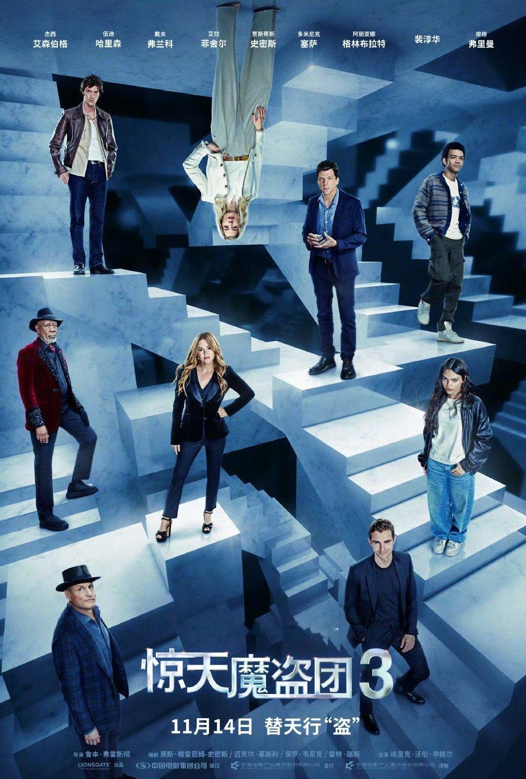 惊天魔盗团3内地定档内地定档11月14日,同步北美。前几日的卢浮宫珠宝被盗事件是