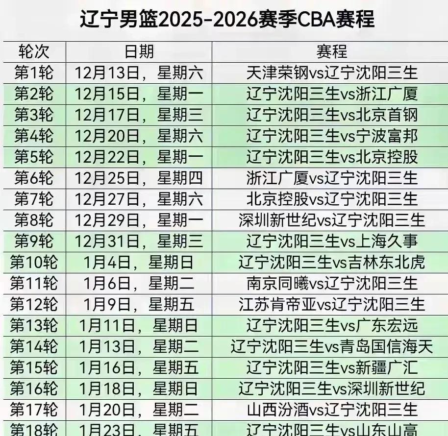 辽宁男篮前20轮赛程,接连碰广厦、北京、广东、新疆。 CBA新赛季的赛程安排已经