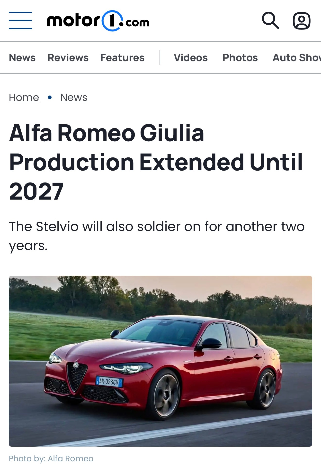 喜欢经典的朋友还有机会:现款阿尔法罗密欧Giulia和Stelvio将延长生产至2027年