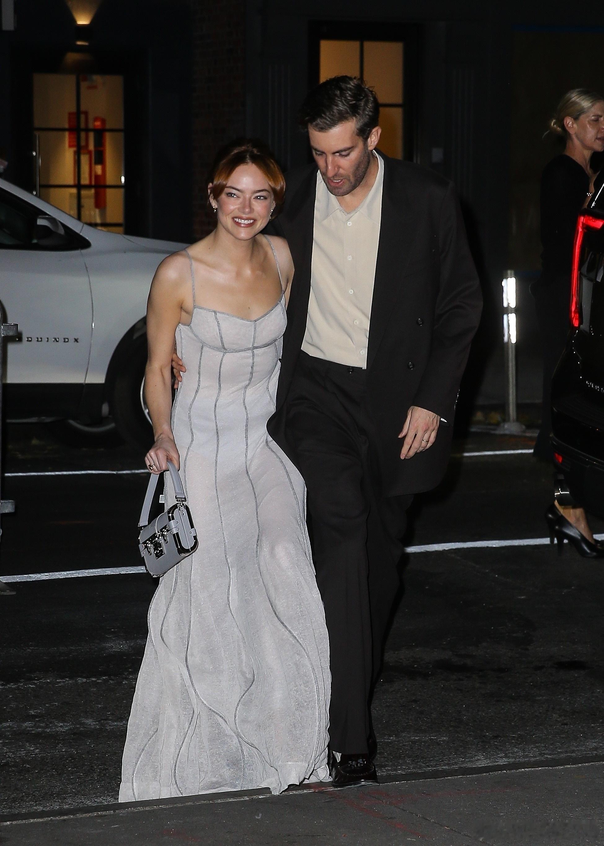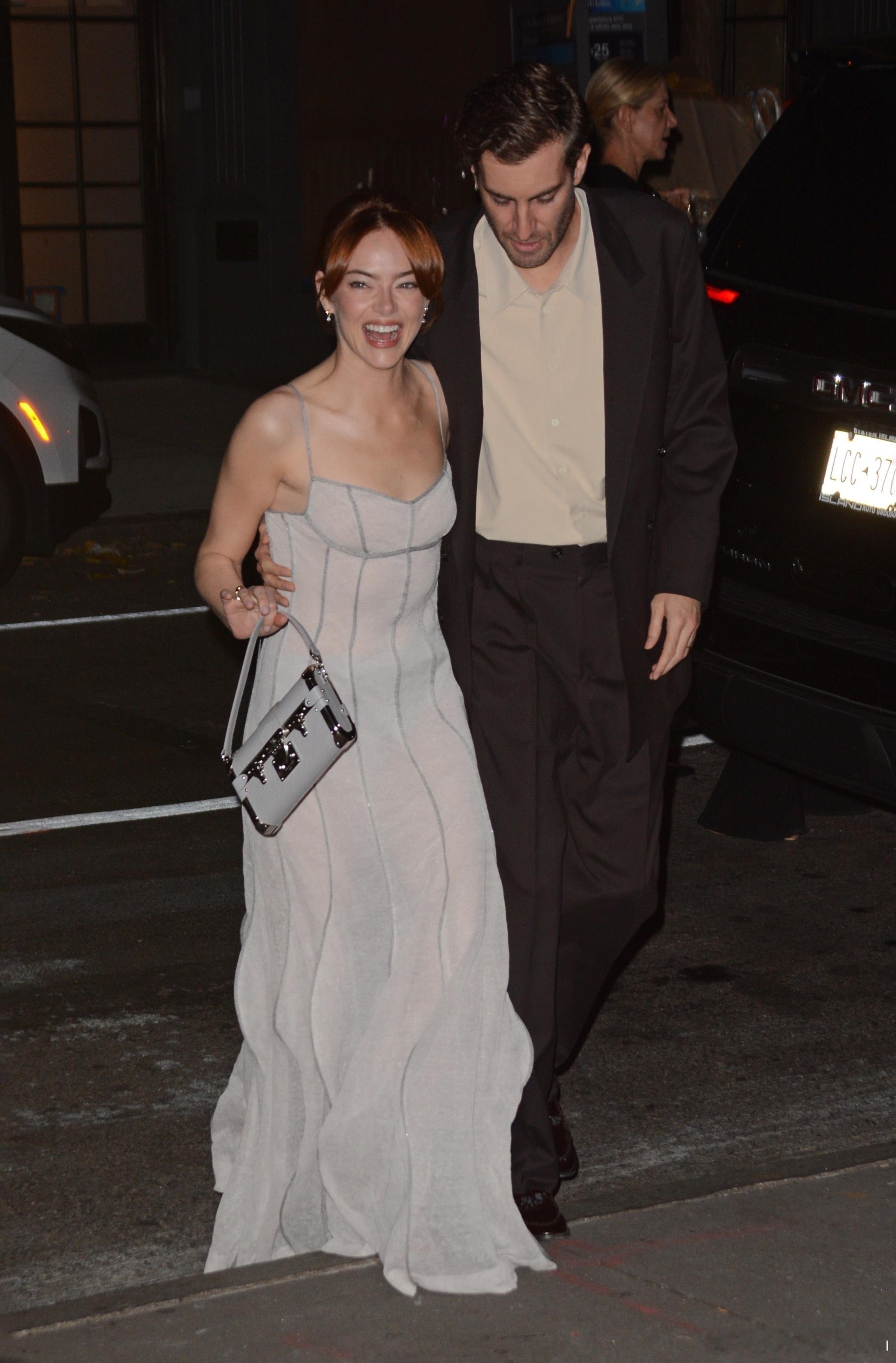 emma stone艾玛斯通和老公Dave McCary在纽约外出,前往出席《Bugonia》首映礼,这套好轻盈感觉可以随时飘起来~