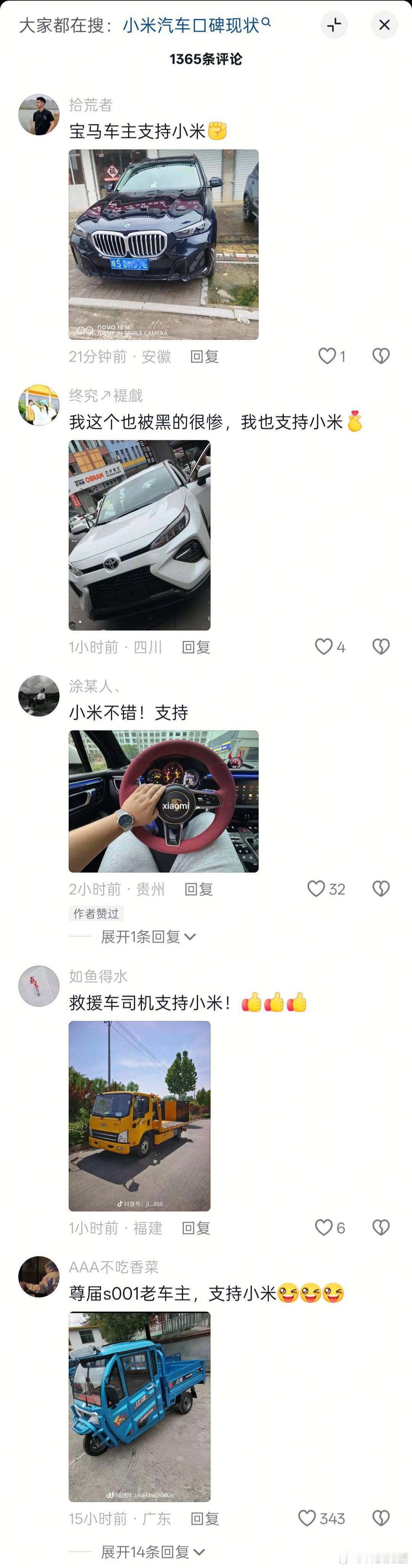 最近几天,各大品牌车主集体声援小米用户,评论区没有互踩,只有体谅。这种场面,挺难得的,也看得人心里暖暖的。