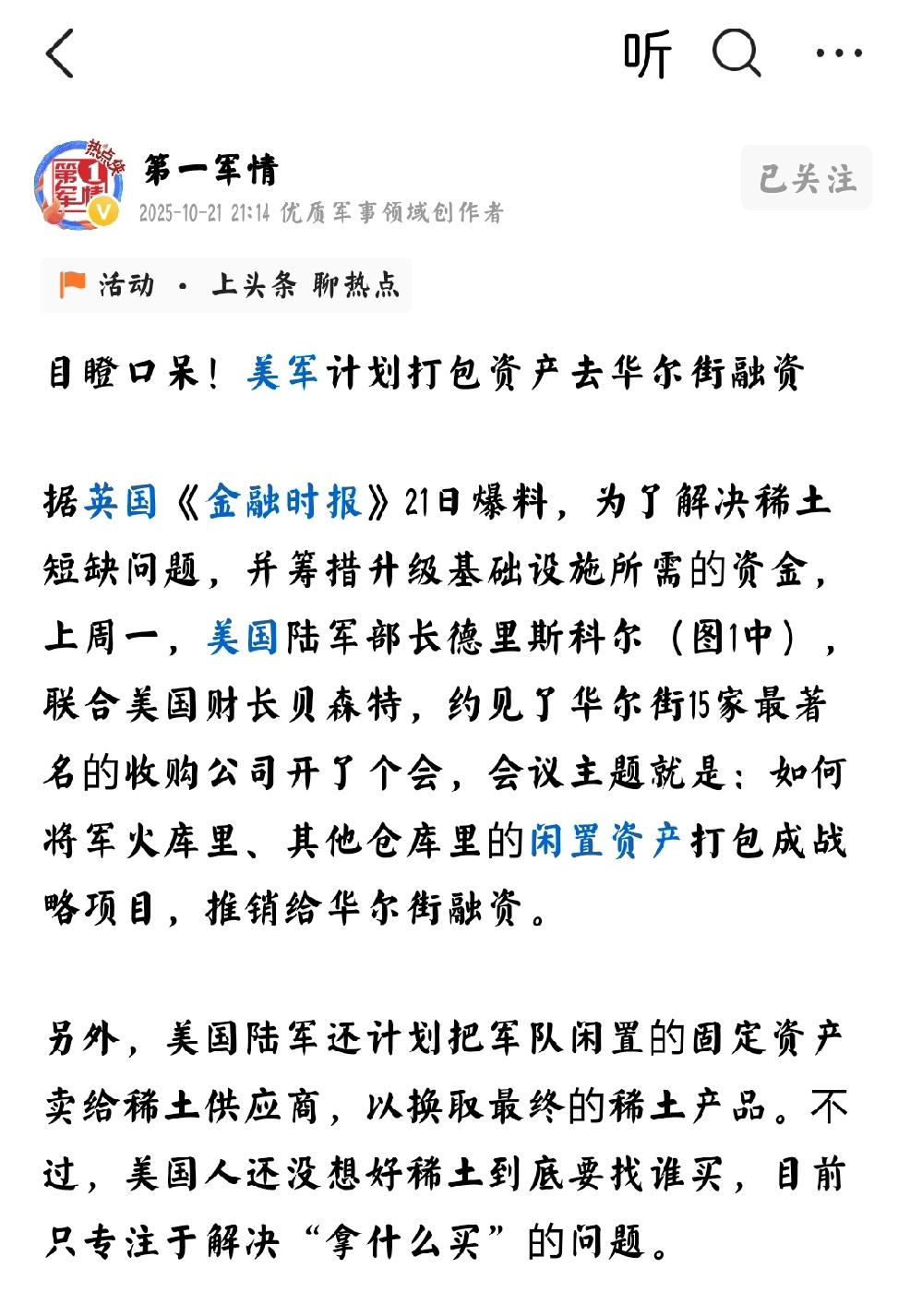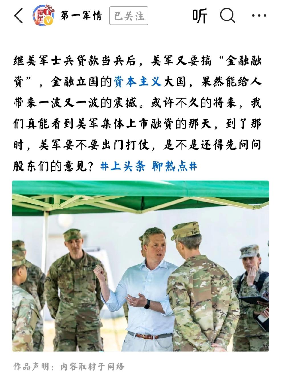 美式炫耀 个人观点:美式炫耀即是皇帝新装式的炫耀,海市蜃楼般的炫耀。 如何炫耀也不能改变美国制造业空心化的现状。 如何炫耀也不能改变美军资产打包找华尔街融资的惊天动地之举。如此明目张胆的国家利器私有化。