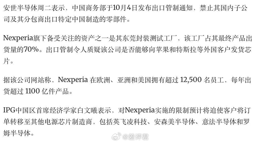 最惨的其实还是安世自己。说到底,供应链上的这些事,本该是商业问题,现在却被硬生生搞成了政治工具。但结果呢?对谁都没好处。在全球化掉头的时代,想拿别人的资产当筹码之前,最好先掂量掂量,自己到底有几斤几两。