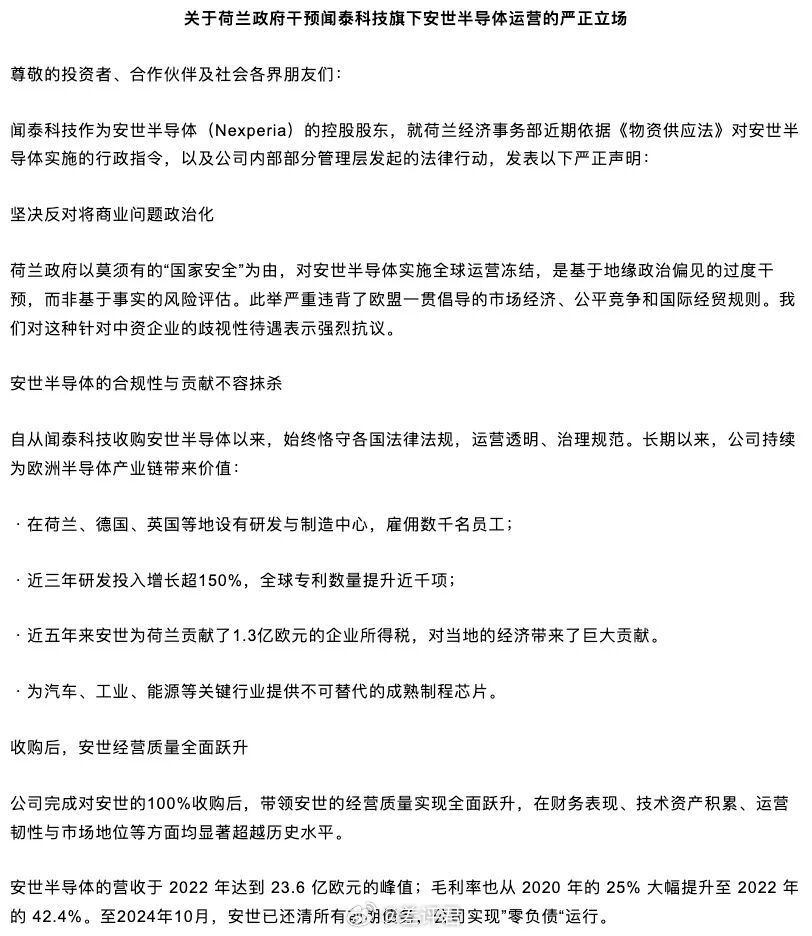 #又菜又爱玩的荷兰人在安世半导体上翻车# 昨天不是有条新闻说#荷兰寻求与中方会面#么,前因后果大家知道不?闻泰和安世,到底啥来头?怎么就能让中美荷三国拿它当牌打,还能卡住欧洲一票车企的脖子?