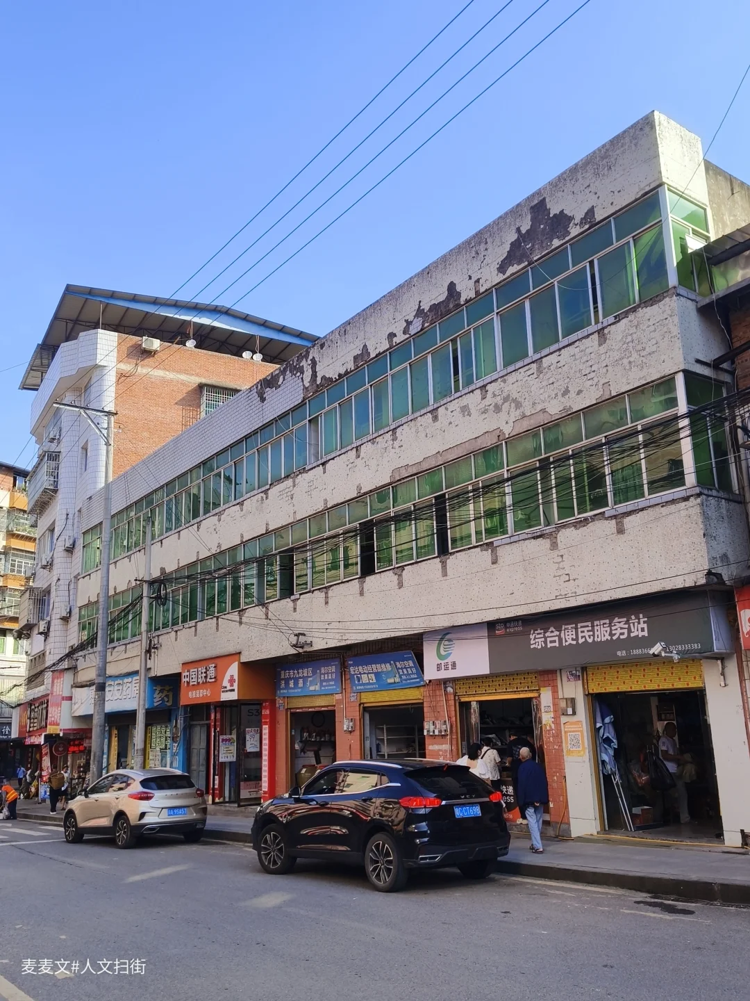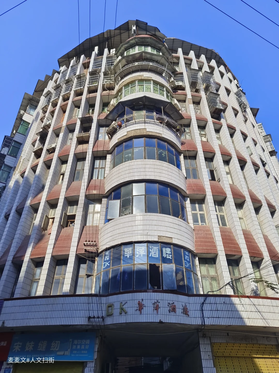 国庆假期探访原国营衡山机械厂旧址,途经重庆市万州城郊的熊家镇(原名雄嘉镇)。尽管衡山厂早已搬迁,但这里却未显萧条。城镇化率与常住人口均过半,街道依旧热闹。衡山街、中心街、皮鞋街及古城大道上,行人穿梭,市井烟火气十足。 最惊喜的是小镇上那些千禧年前后的建筑,造型独特,蓝色玻璃、白色瓷砖、弧形阳台、复古招牌……随手一拍便有穿越感。486厂家属区痕迹与新兴小镇风貌交织,既有岁月沉淀的工业记忆,又有当下生活的鲜活气息。熊家镇就像一本半翻开的书,记录着变迁,也书写着新生。