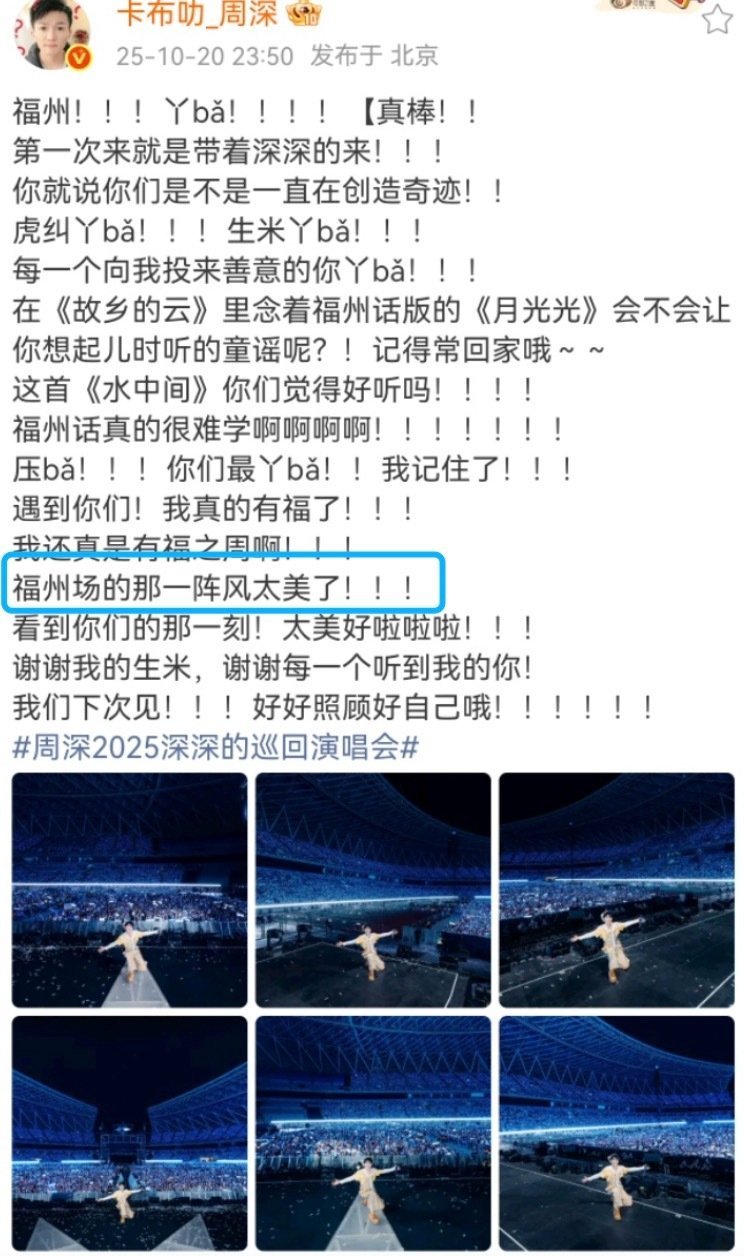 周深的仙气没想到这么写实仙气认证!周深福州演唱会惊现“舞台旋风”,彩带飞舞间精准