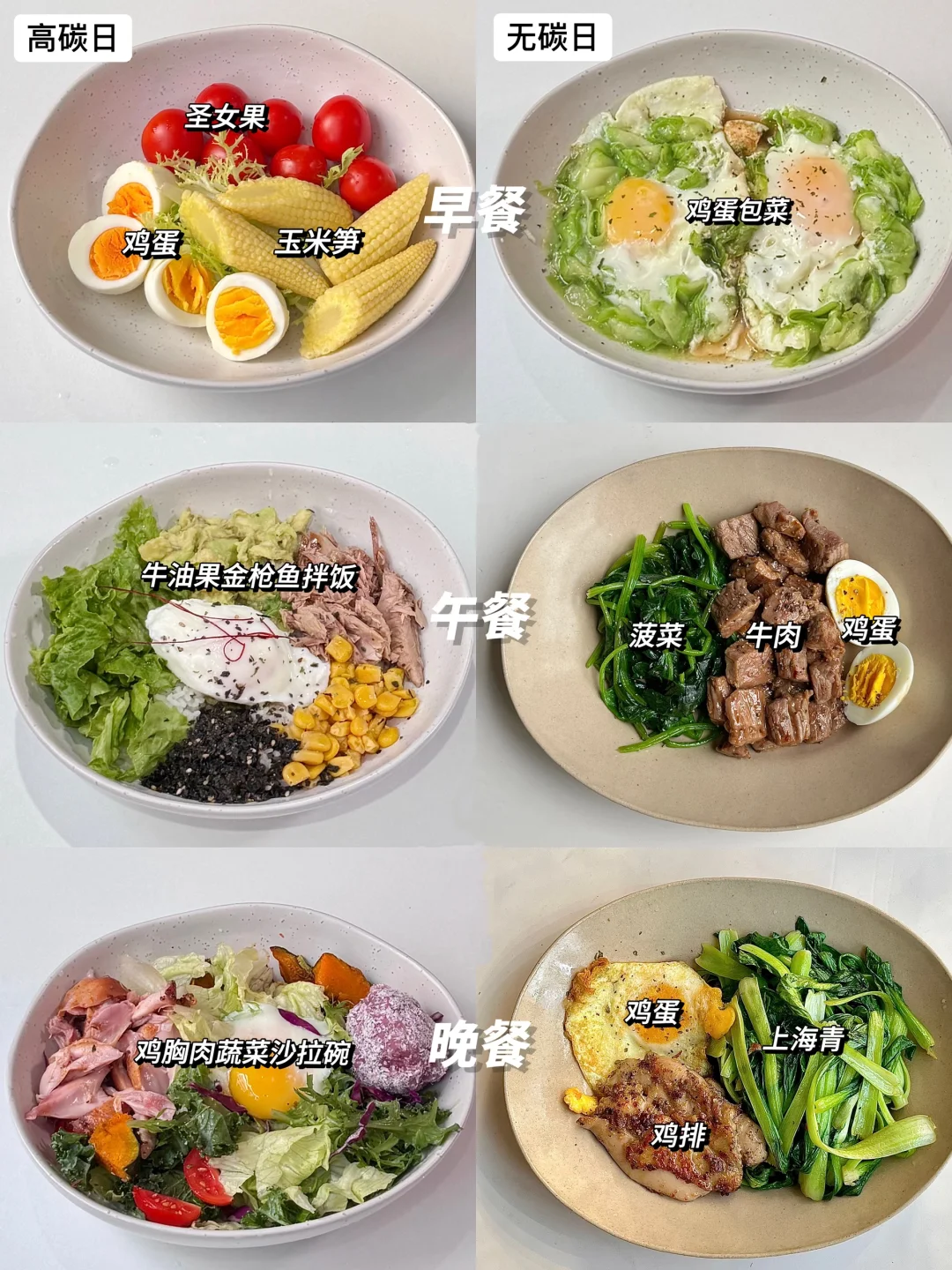 • 低碳日:减少碳水,迫使身体更多燃烧脂肪;
