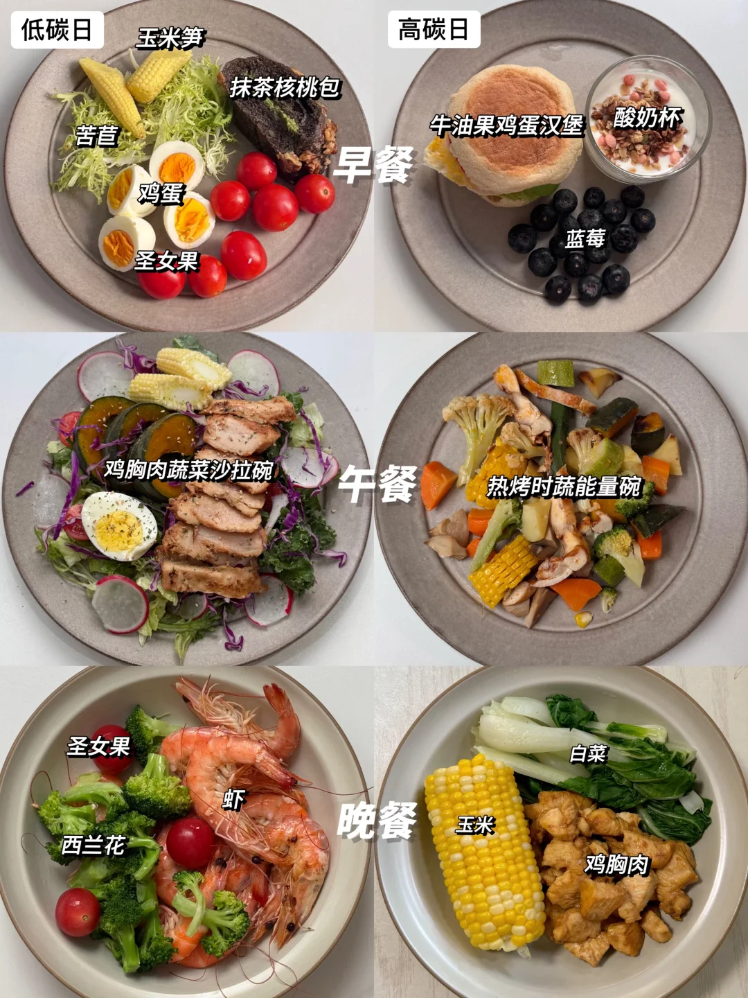 • 高碳日:多吃碳水(如米饭、面包),给身体充糖原,提升代谢和运动表现;