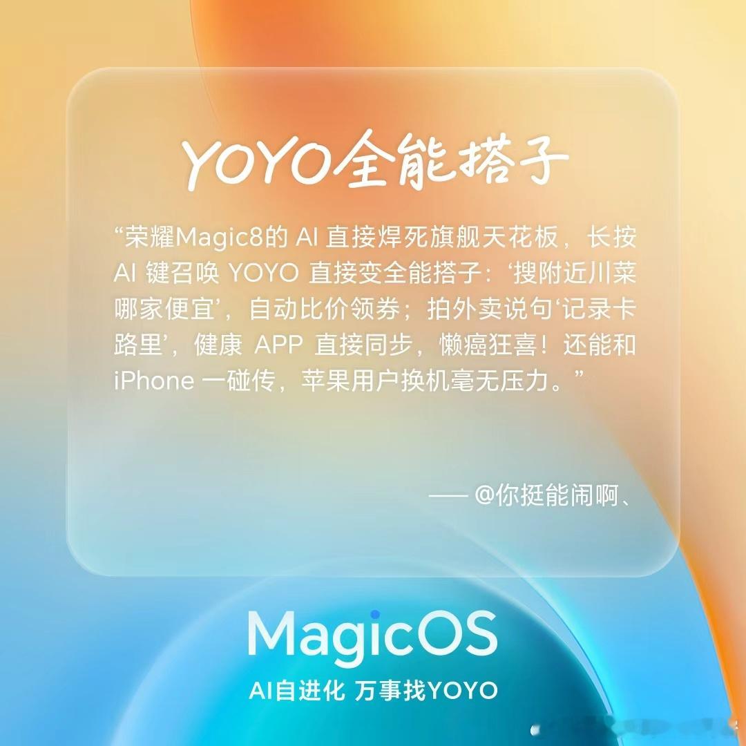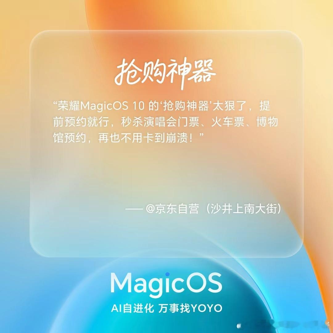 荣耀MagicOS10“听劝大优化”,流畅丝滑,通透设计太有感觉!AI全能搭子助力日常,跨品牌互联一碰即传,效率翻倍!用户好评如潮,期待值拉满,快来一起感受科技新高度吧!MagicOS10
