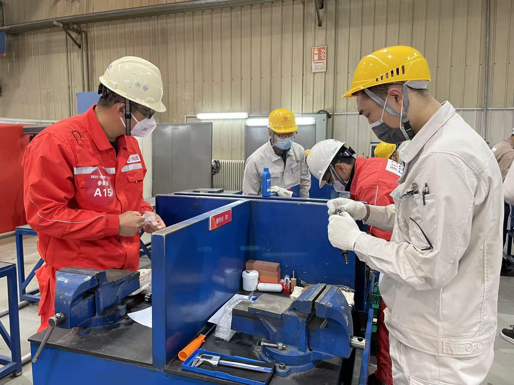 本次大赛分为理论考试和实践操作两部分,主要考核钳工专业技能、安全操作规程、装备制造工艺等方面的内容。随着比赛正式开始,赛场内金属碰撞声此起彼伏,选手们反复校准平面精度,力争让每一次测量、每一次打磨都精准到毫米级。“钳工是制造类企业的一种基础工种,通过企业间的交流能促进钳工技能的提升,同时,选手们在比赛中也能学习到其他选手的经验,助力企业未来发展。”天津汽车模具股份有限公司联合工会主席孟宪坤表示。