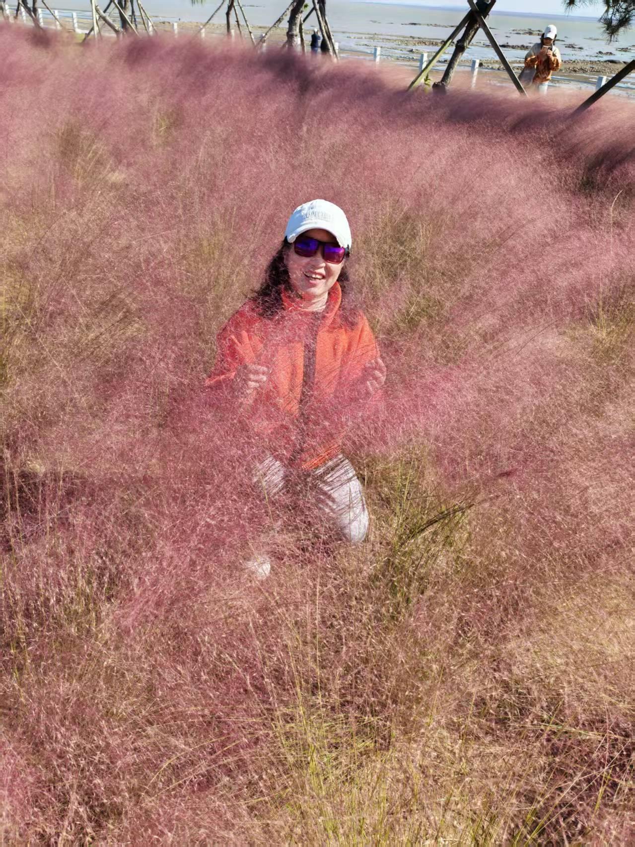 月亮湾休闲公园,荡秋千跳格子,粉黛乱子草中藏着浪漫!我是新乳山人 月亮湾景 月亮湾花海
